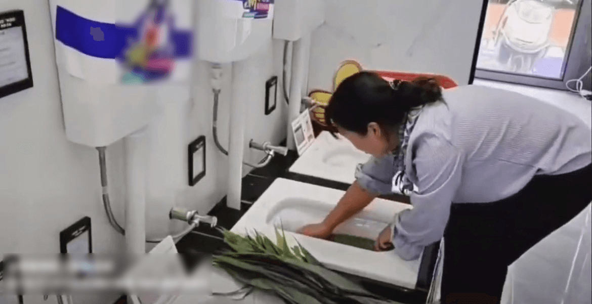 根據中國媒體報導,這起事件發生在中國雲南省一家販賣衛浴設備的店家,從網路上流傳的影片顯示,有位女子彎腰站在一個蹲式馬桶前,不斷地用馬桶內的水沖洗粽葉,接著直接將整張粽葉就貼在馬桶底部刷洗乾淨,洗完之後就將它放置在另一個蹲式馬桶上,動作相當俐落。