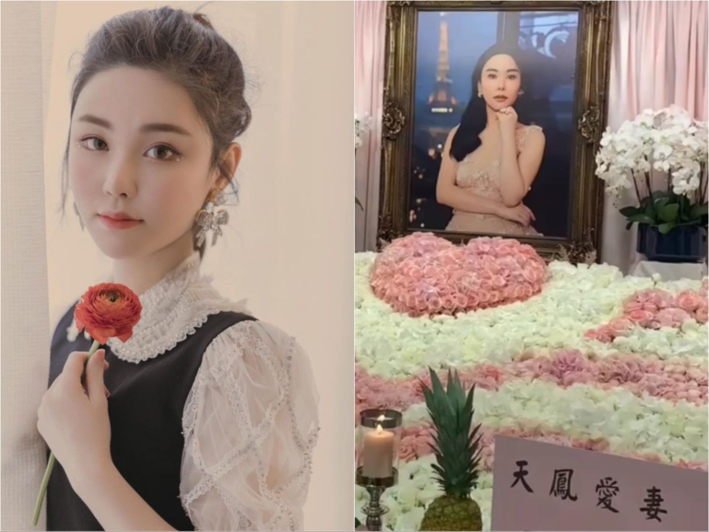 影片中家屬為蔡天鳳精心布置粉紅色靈堂,還有多張蔡天鳳生前的美照,蔡的靈堂不對外公開,現場仍有千名親朋好友前來送別,「五姐」除感謝各界親友來送寶貝女兒最後一程,也謝謝香港警方的偵辦。