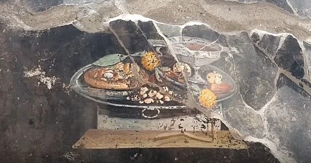 考古學家在義大利龐貝古城(Pompeii)的廢墟遺址中發現了一幅具有2,000年歷史、引人注目的靜物壁畫,推測上面描繪的大餅,類似於我們大家熟知的披薩前身,儘管這道菜似乎缺少兩種基本成分──番茄和莫札瑞拉起司,並且包括一個看起來很像鳳梨的食材。雖然技術上它可能不是真正的披薩,但義大利文化部認為這可能是現代菜餚的遠祖。