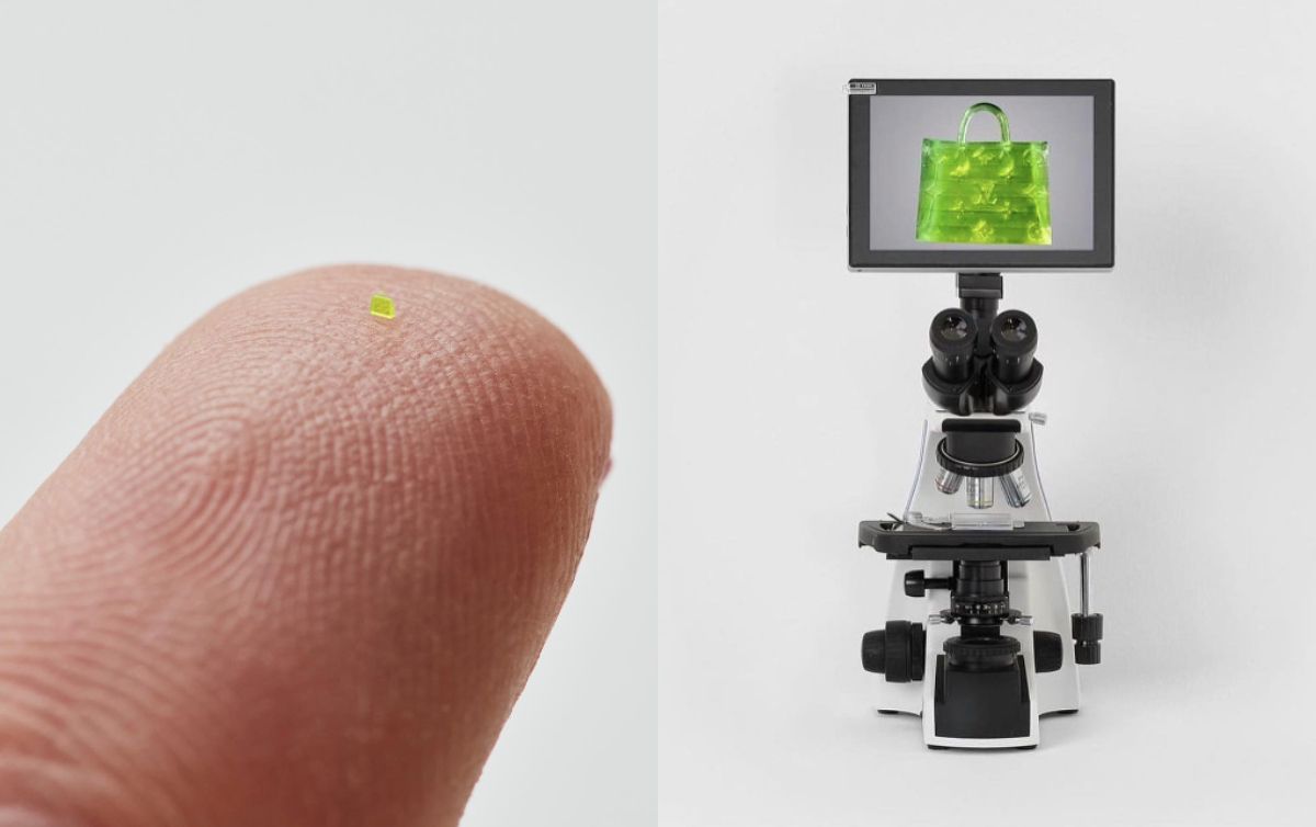 如今再推出印有LV樣式的「微米包」,目前品牌方雖未有動作,仍引發一波話題,MSCHF透露,包包是透過3D列印打造,製作過程中還曾因包包太小而遺失,日前在拍賣會上以超過6萬美金的高價售出,團隊也強調,買主不用擔心找不到包包,因為買包附贈有數位螢幕的顯微鏡。
