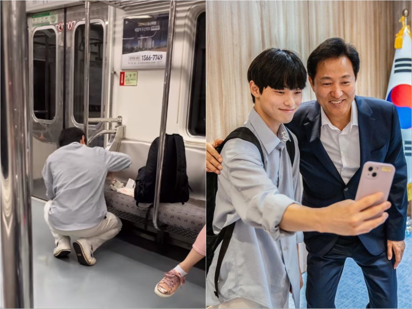 南韓一名金姓青年7日搭乘地鐵時成為話題人物,當天他發現座椅上有嘔吐物,因怕其他乘客坐下沾到,便蹲下來拿出衛生紙擦拭,一名李姓女乘客將青年善舉拍下PO網感動網友,青年表示他只是怕影響其他人才順手清理,此話讓首爾市長吳世勳也大讚「真是美好的青年」。