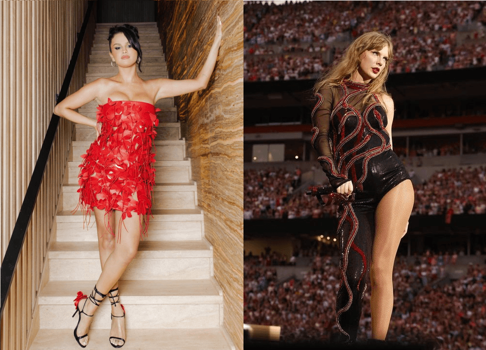 席琳娜在個人Instagram分享生日趴照片,她穿著Bottega Veneta的紅色抹胸洋裝,衣服綴滿了立體紅花朵,空隙中隱約透出小麥膚色,腳上踩著黑色細跟高跟鞋,腳跟還綁上花瓣呼應,搭配鑽石耳環和墨鏡,套上底片濾淨,Y2K感瞬間拉滿。