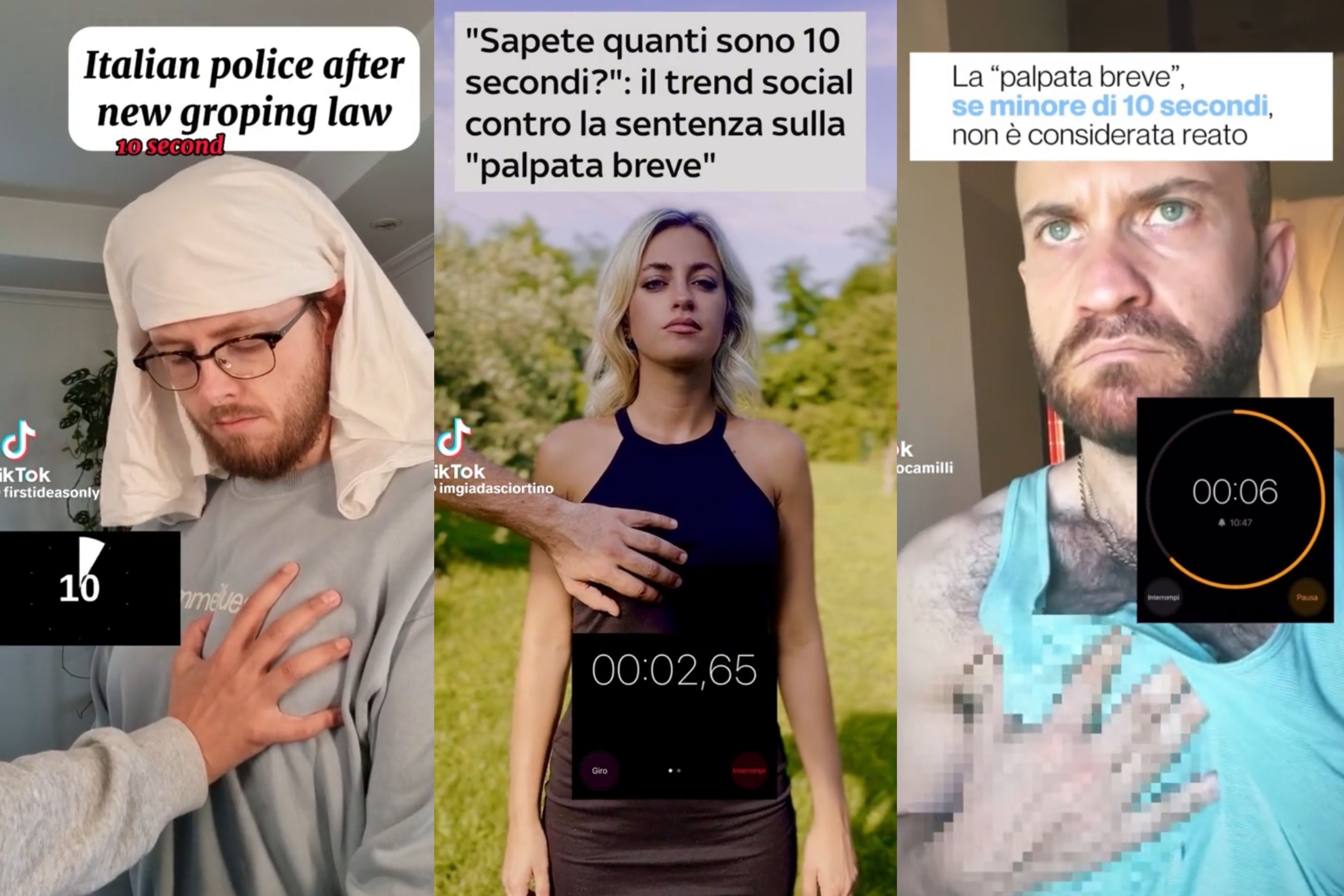 對於這場判決結果,不少義大利網友發起「10秒運動(10secondi)」,他們默默看著鏡頭,碰觸自己的胸部10秒,藉此表達「就算只有10秒也是性騷擾」,在IG上擁有近3千萬粉絲的義大利企業家法拉妮(Chiara Ferragni)也在TikTok上發布影片,痛批「誰說10秒不長?誰在妳受騷擾時計算秒數?男人沒權力觸摸女人的身體,哪怕是1秒鐘」。