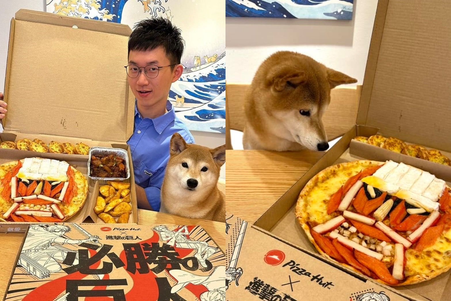 網紅視網膜(陳子見)今(1日)在臉書開箱,必勝客與《進擊的巨人》夢幻聯名的16吋「巨人臉披薩」,品嚐後直呼頭骨蓋很好吃,而愛犬柚子的舉動,也讓他笑說「店員辛苦的排盤柚子都看在眼裡」,貼文一出引發網友熱烈回響。
