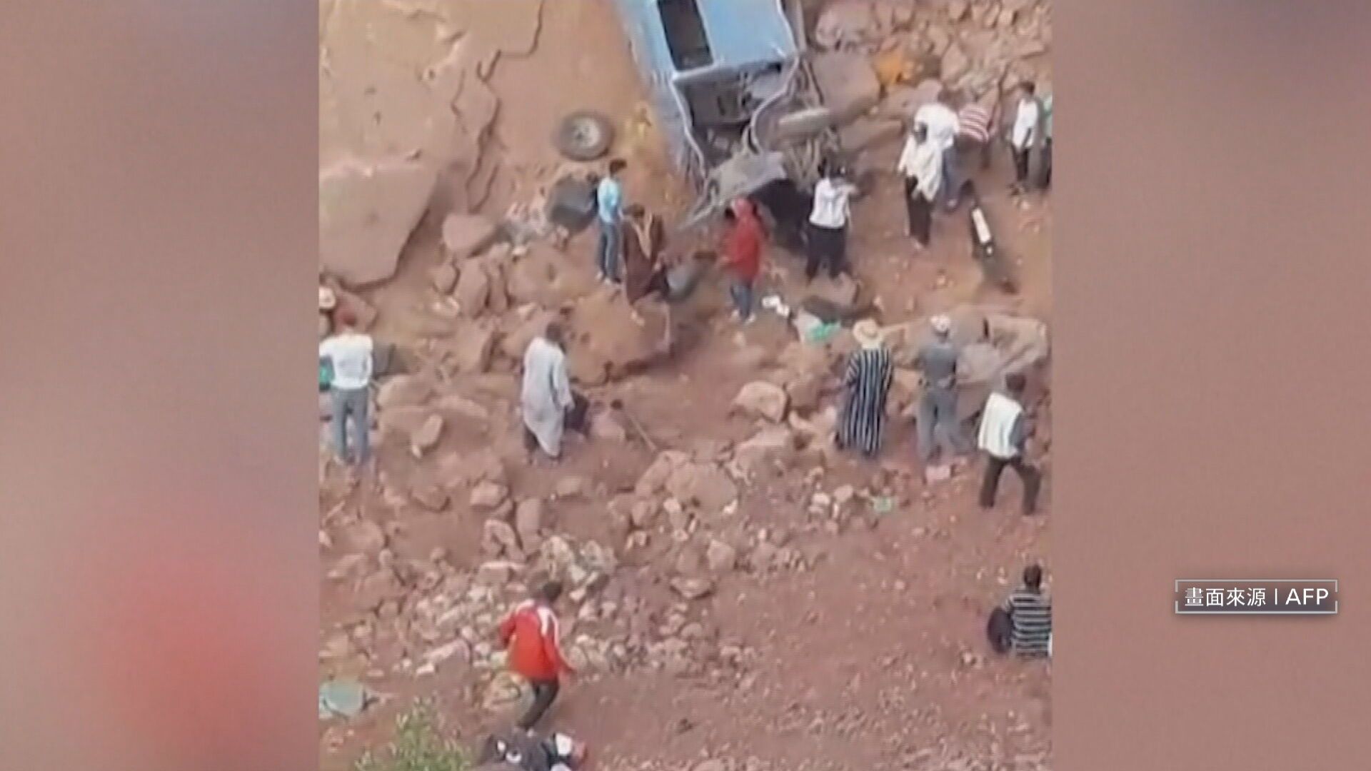 這輛小巴士,當時正打算前往市集,疑似轉彎過快,翻覆墜落深達60公尺的峽谷。這輛藍色小巴士、原本就十分老舊,又因為撞擊力道過大,整輛車支離破碎,完全變形。車上24人全數罹難,死者中,包含兩名婦女和一名小孩。摩洛哥因為基礎建設太差,死亡車禍頻傳,去年因為交通事故死亡者高達3,200多人。