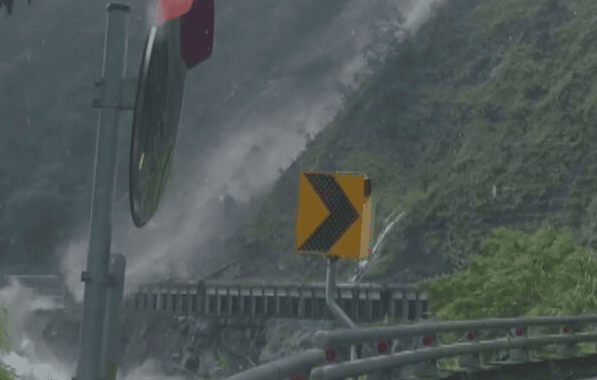今(8日)上午10點左右,疑似是因為大雨不斷沖刷,大量的土石從山坡滑落,還揚起大量煙塵,過沒多久隧道口就被淹沒,土石還掉落到一旁的溪流中,建起相當大的水花,可見衝擊力道很大。