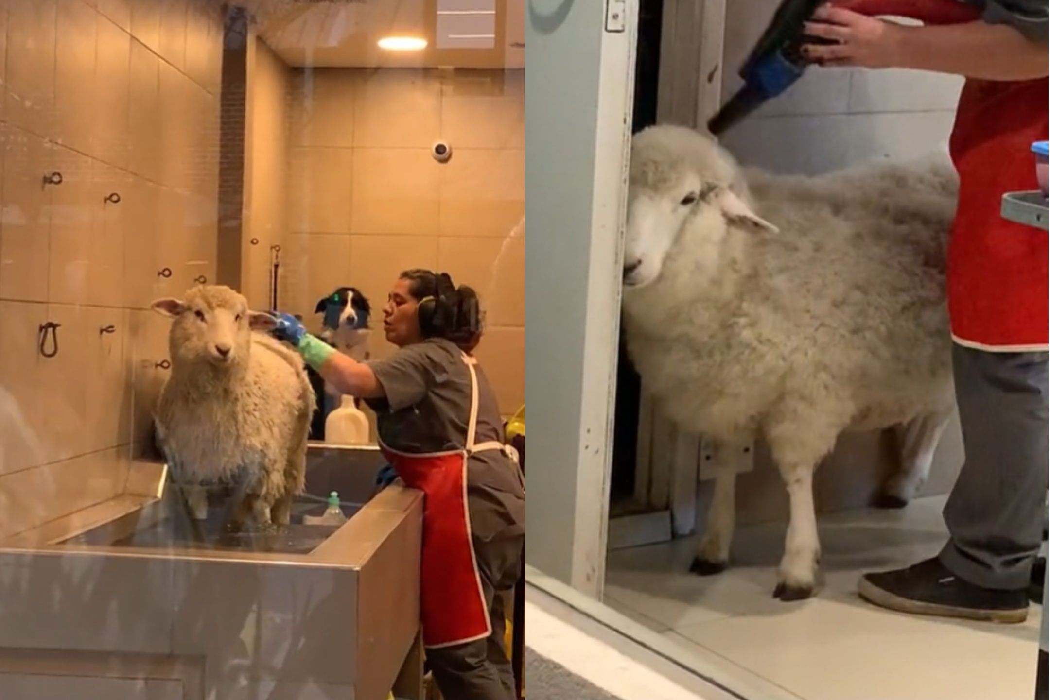 寵物美容店大多都是貓狗來光顧,但在阿根廷卻有飼主將綿羊也送去寵物美容店洗澡,奇特景象吸引路人目光,紛紛停下腳步探頭往店內看,而美容師也透露這隻綿羊有著可憐身世,她母親遭掠食者攻擊死亡,而小綿羊就由附近人家收編了。
