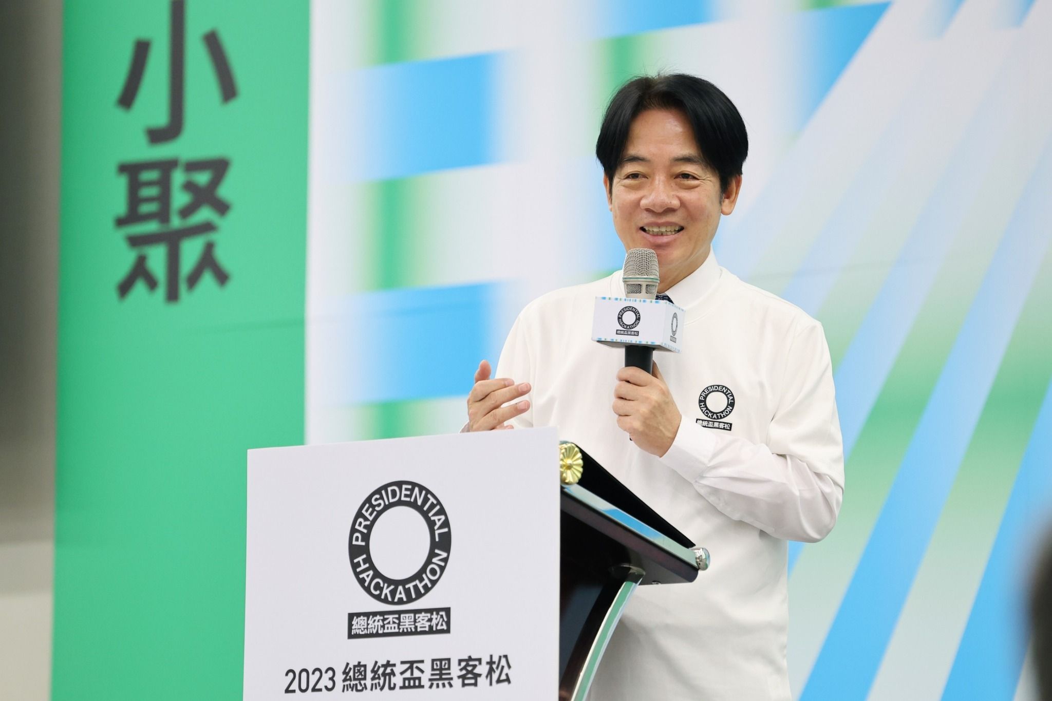 接著賴清德拿出自己的第二波競選小物,有頸枕、行李束帶、行李吊牌及隨身小包,「各式各樣,通通俱全」,相當適合帶去旅行,他也透露其中自己最喜歡的是鯨魚外型的頸枕,隨後賴清德準備為大家介紹使用方式,卻一陣手忙腳亂,似乎和鯨魚頸枕不太熟,場外也趕快出聲救援,尷尬一笑後賴清德立刻裝沒事,讓網友笑說「好可愛」、「不知不覺笑出來」。