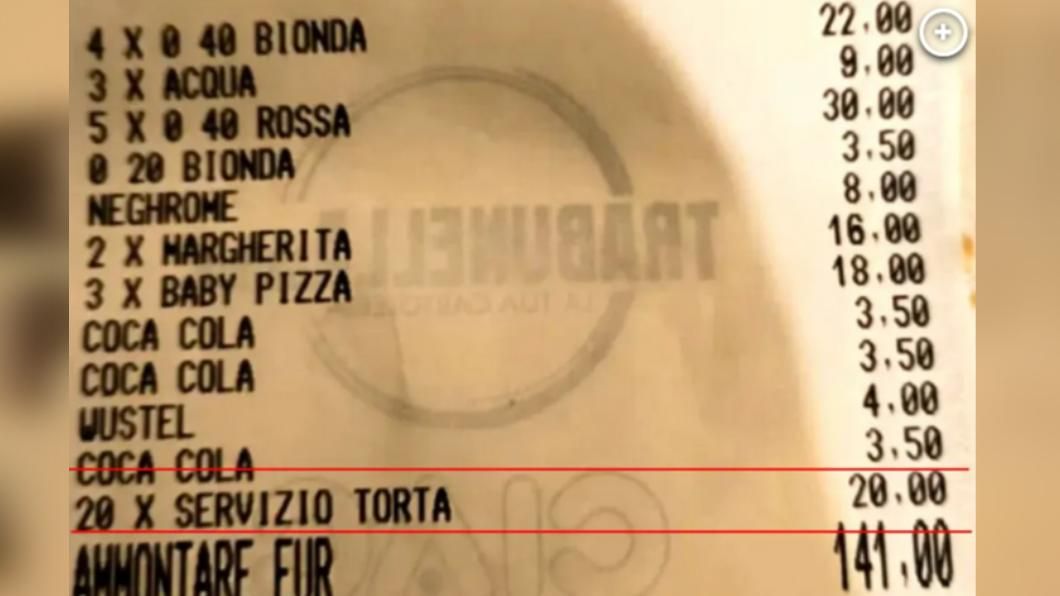 據《紐約郵報》報導,一家人至位在義大利西西里島(Sicily)巴勒莫(Palermo)的餐廳用餐,期間為了慶生要求服務生幫忙把蛋糕切成20塊,結帳時則發現帳單上出現了20歐元(約新台幣690元)的「蛋糕服務費」。