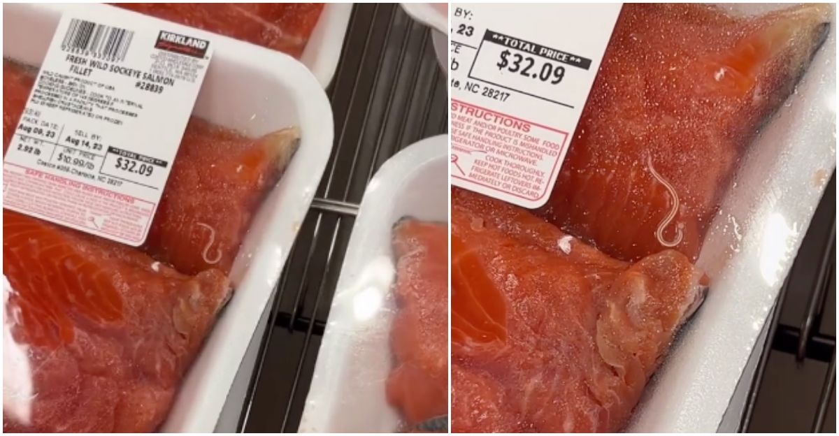 綜合外媒報導,34歲的瑞秋(Rachel Lyn)日前到美國的某間好市多購物,逛到海鮮區發現生鮭魚排的包裝上,竟然有一隻蠕動的活蟲,畫面上可以看到這隻蟲「非常活潑」,不斷扭動身體,讓瑞秋受到不小驚嚇。