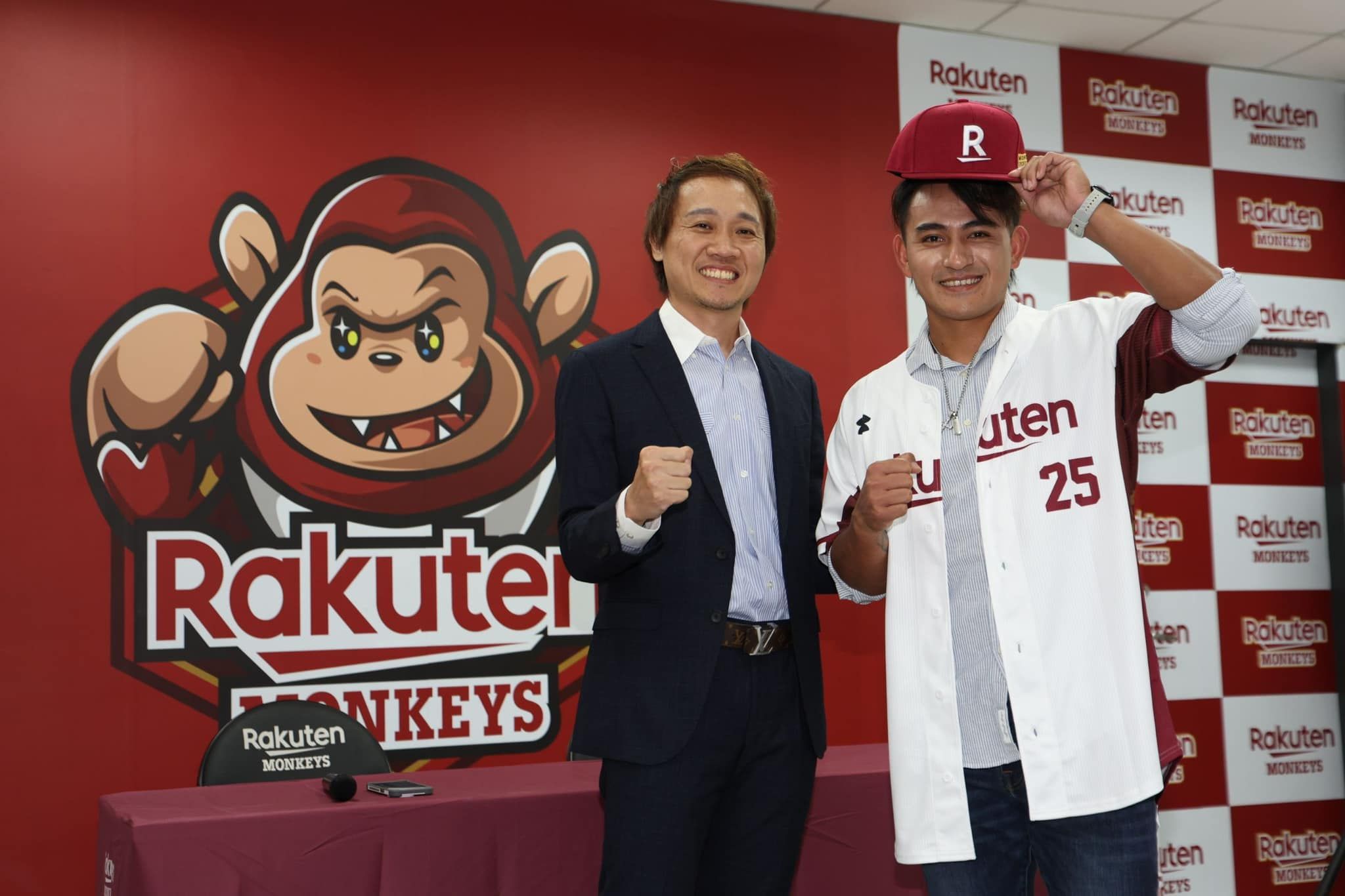林子偉原本是今年台鋼雄鷹的選秀狀元,桃猿透過交易案送出王溢正、藍寅倫、翁瑋均3位球員,外加王柏融的契約權,換來擁有大聯盟身手的「工具人」,球團贈送給他一塊專屬匾額,寫的是「天子驕子」,寓意是希望他成為樂天的孩子。