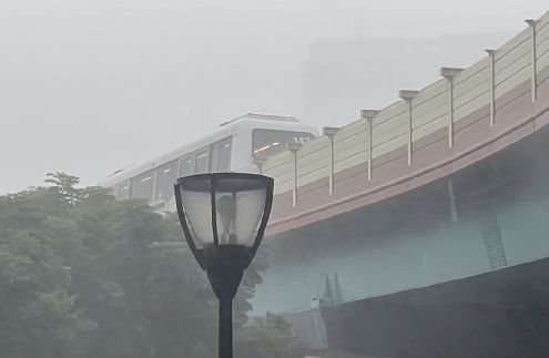 台北市今天(22日)下午雷聲隆隆,文山木柵區下起豪大雨,導致文湖線列車停駛卡在軌道上,有列車也出現車頭漏水情況將近半小時,台北捷運公告,因號誌傳輸網路異常,影響列車運行停駛。