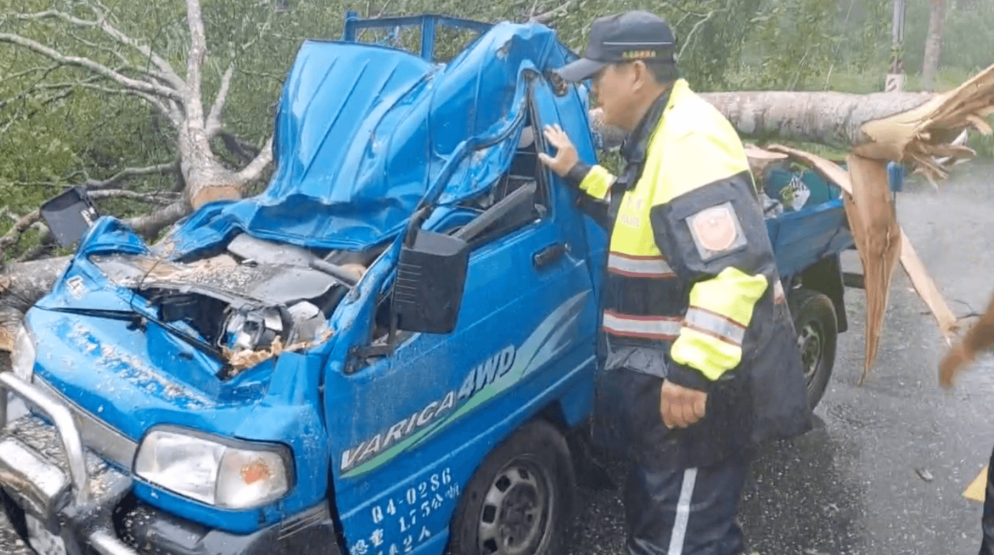 海葵颱風來襲,上午11點左右 ,花蓮卓溪鄉卓清村的台30線上,有一輛小貨車遭倒塌的路樹砸中, 車上2人父子檔一度受困 ,駕駛是45歲的林姓男子,副駕駛座則是他的22歲兒子,所幸兩個人隨即被救出,傷勢無大礙。