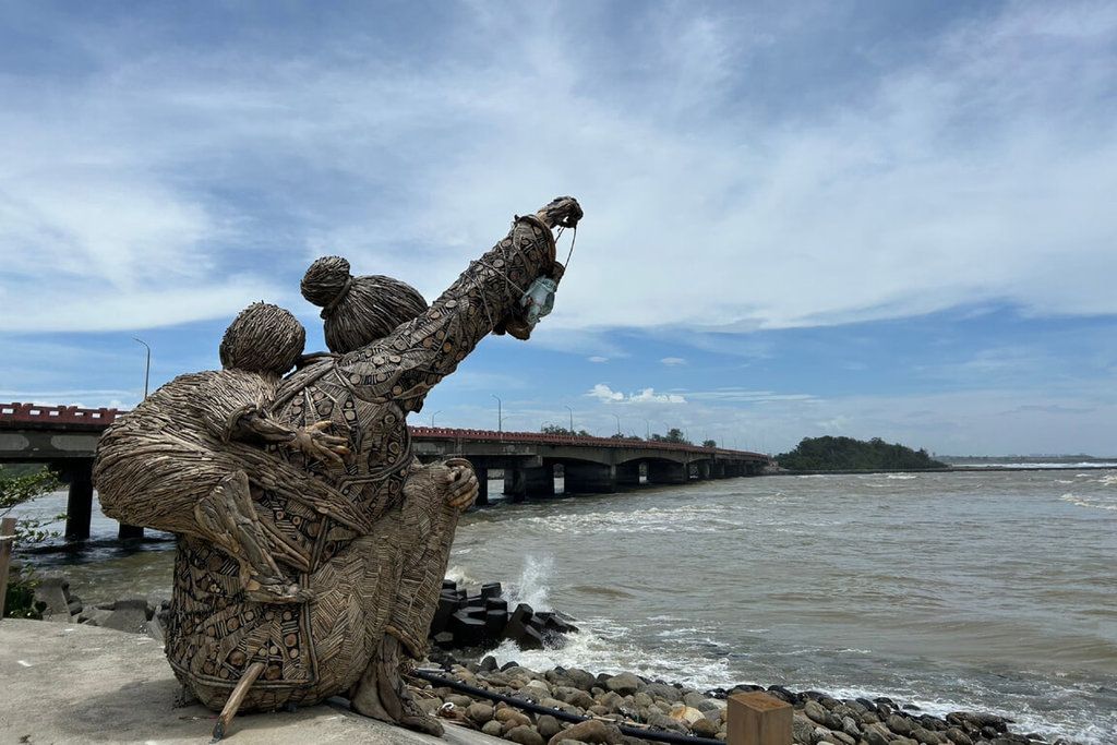 海葵颱風「回馬槍」從高雄再此登陸,在高雄、台南海岸打轉,台南四草大橋下的熱門景點「台江阿嬤」再度封閉,有民眾發現阿嬤手上提的油燈用布包起來,不禁猜測颱風是否就是阿嬤引導來台,所以市府才將燈遮起來?文化局聽聞說法啼笑皆非,解釋是為了避免強風損及作品。