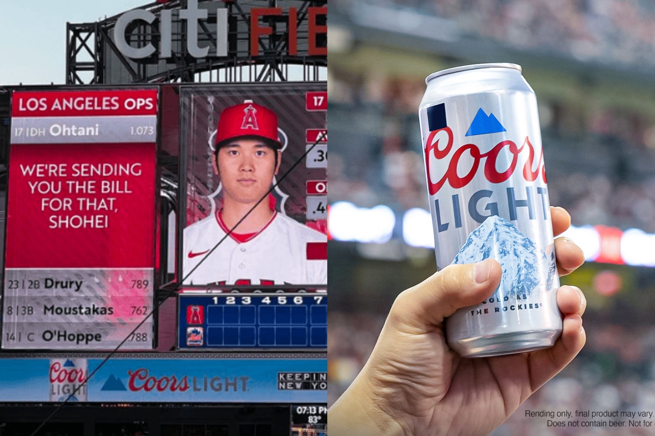 美國大聯盟(MLB)天使隊日本球星大谷翔平在8月27日與大都會對戰時,意外把球打到場邊LED螢幕上,造成畫面一度「全黑」,大都會官方當下透過螢幕幽默回應「會把維修帳單寄給你,翔平!」,而當時螢幕正播放啤酒廣告,業者也將此視為商機,推出一款「紀念瓶」,還稱「這是以世界棒球巨星為靈感的設計」,引起球迷關注。