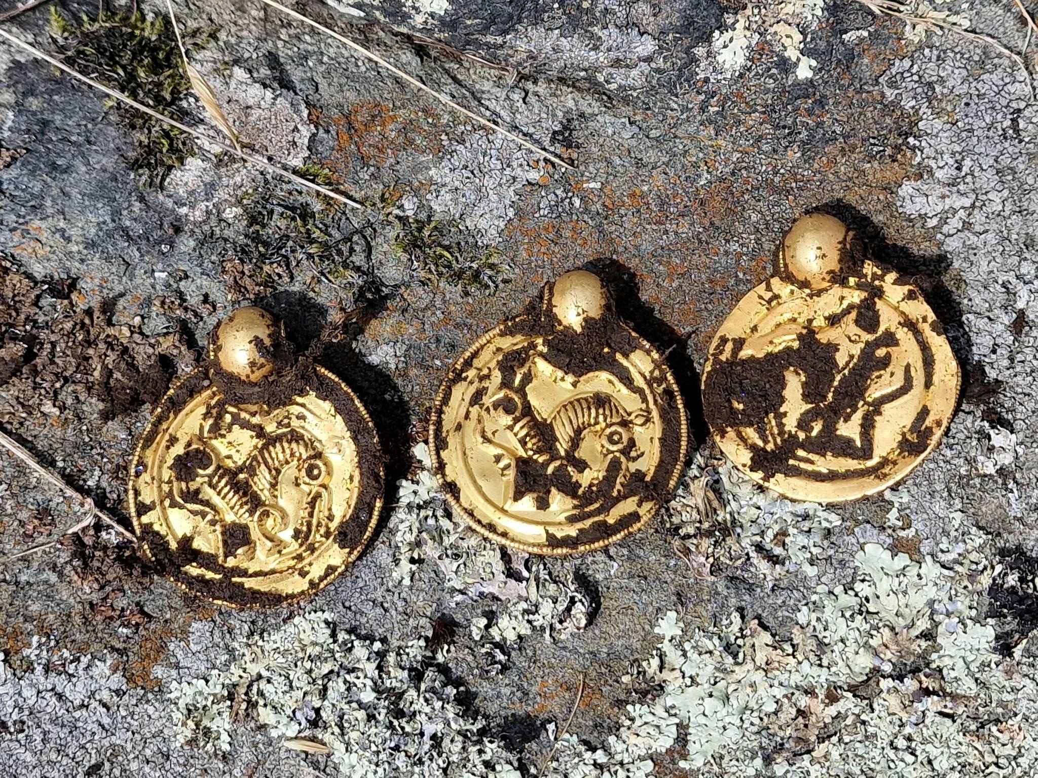 根據了解,考古學博物館副教授雷爾森(Hakon Reiersen)表示,這些被波爾誤認為巧克力金幣的扁平黃金墜飾名為「布萊克梯特幣(bracteate)」,跟一同出土的金珠其實是項鍊一部分,金片上的圖案是北歐神話主神奧丁(Odin)正在治療兒子巴爾德的馬,象徵將守護佩戴項鍊之人的健康。