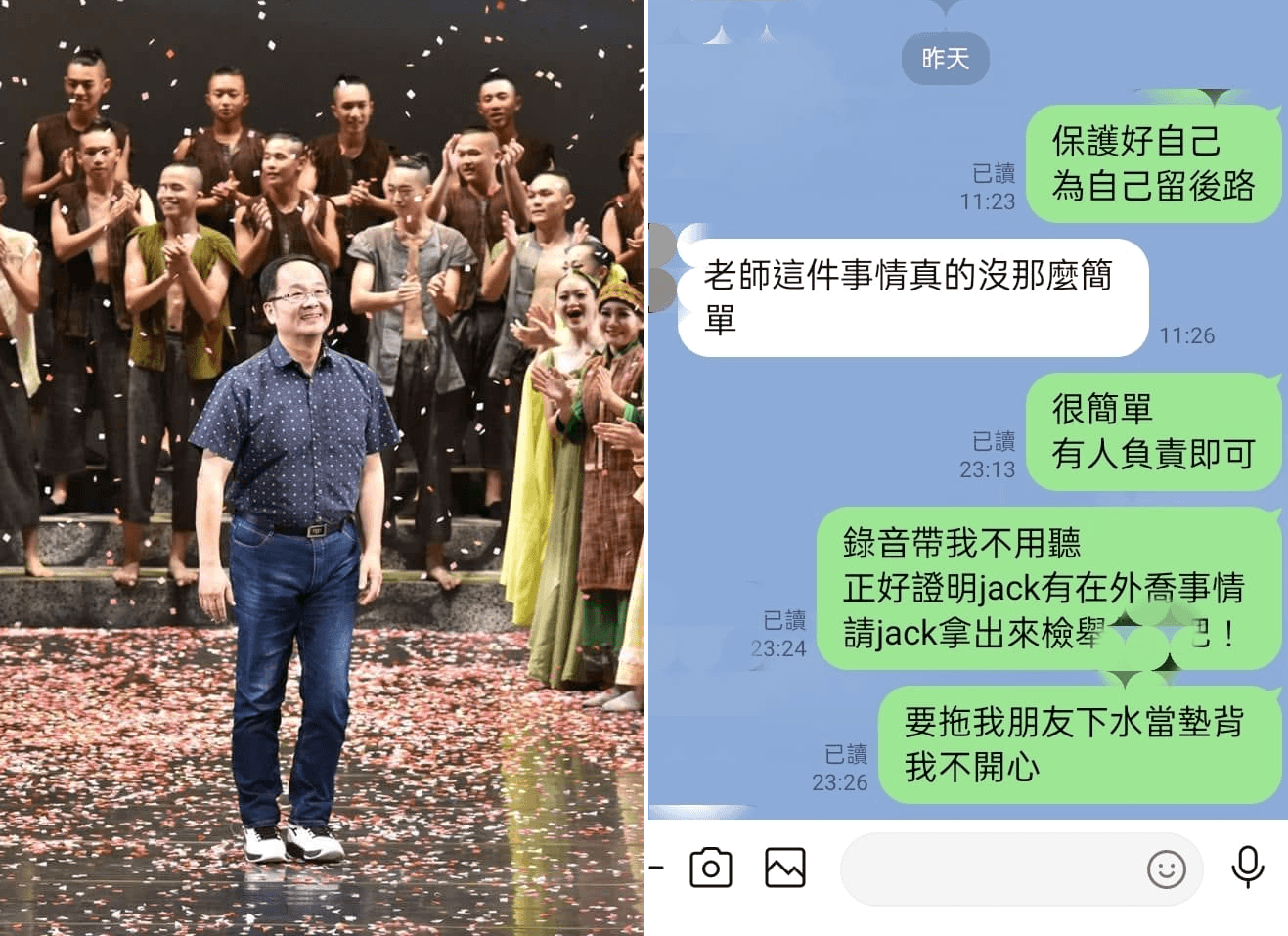 據錢康明描述,原來在他連日爆料後,李坐不住,一邊擬新聞稿撇清自己,一邊以錄音威脅曾有檯面下往來的錢康明友人,要脅如果錢繼續爆料,將公開錄音,揚言讓該名友人吃不完兜著走。這名稱呼錢康明為老師的友人示弱道,「老師這件事情真的沒那麼簡單」,語氣看來略顯無助,錢康明只能勸說對方保護好自己、留後路,還說錄音檔正好證明他先前說李忠庭「在外喬事情」都是真的。