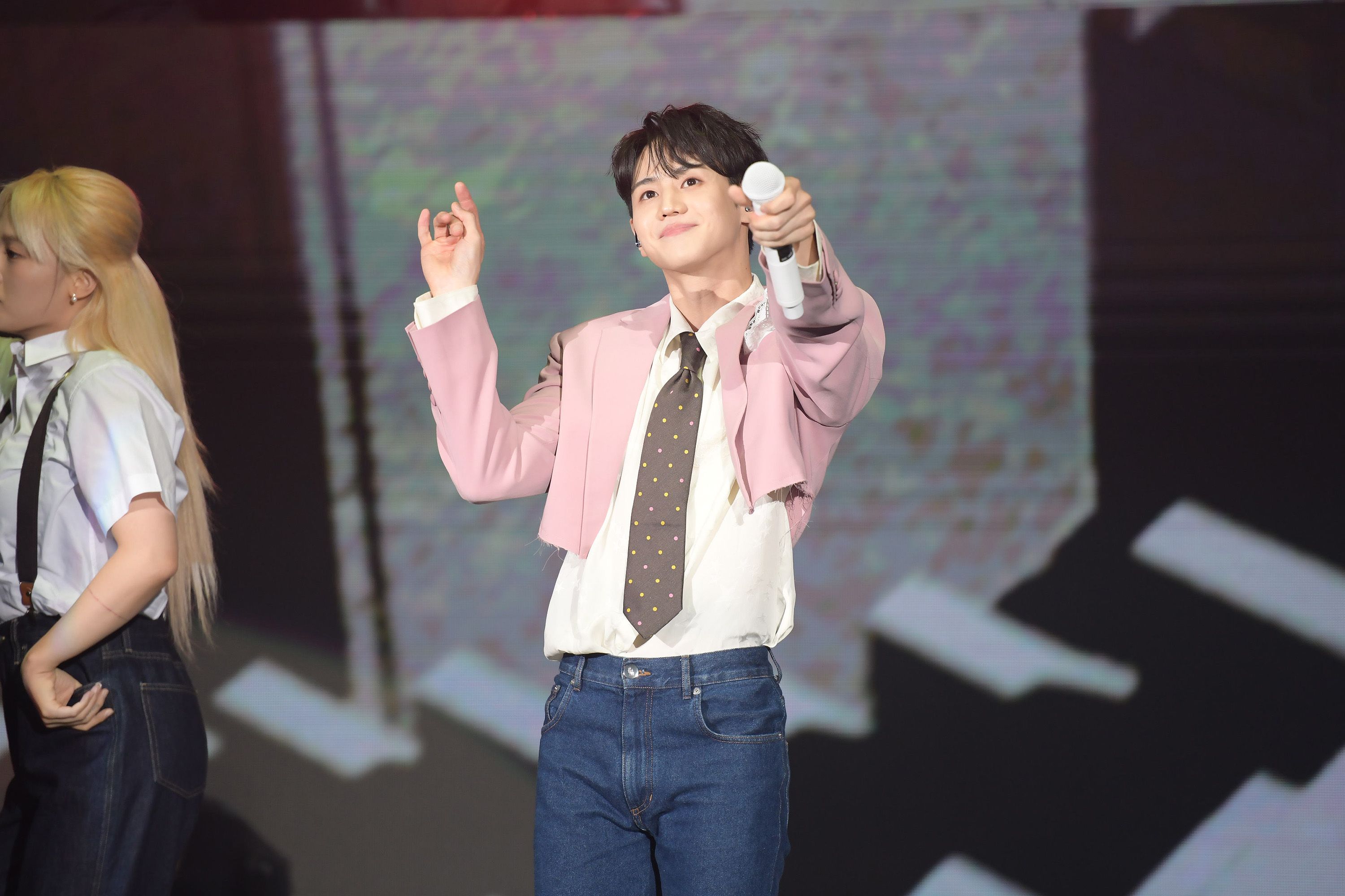 南韓男團HIGHLIGHT主唱梁耀燮繼年初隨團來台會粉絲,時隔7個多月首度在台舉辦個人演唱會,晚間他身穿粉紅色短版西裝外套搭配白襯衫、牛仔褲帥氣登場,他自爆從首爾展開巡演後,從來沒有脫過外套,但因為台北的粉絲太過熱情、天氣又熱,讓他第一次脫下外套,笑說「我好像太嗨了」,一邊拿起小抄用中文預祝全場2,000名歌迷「中秋節快樂」。