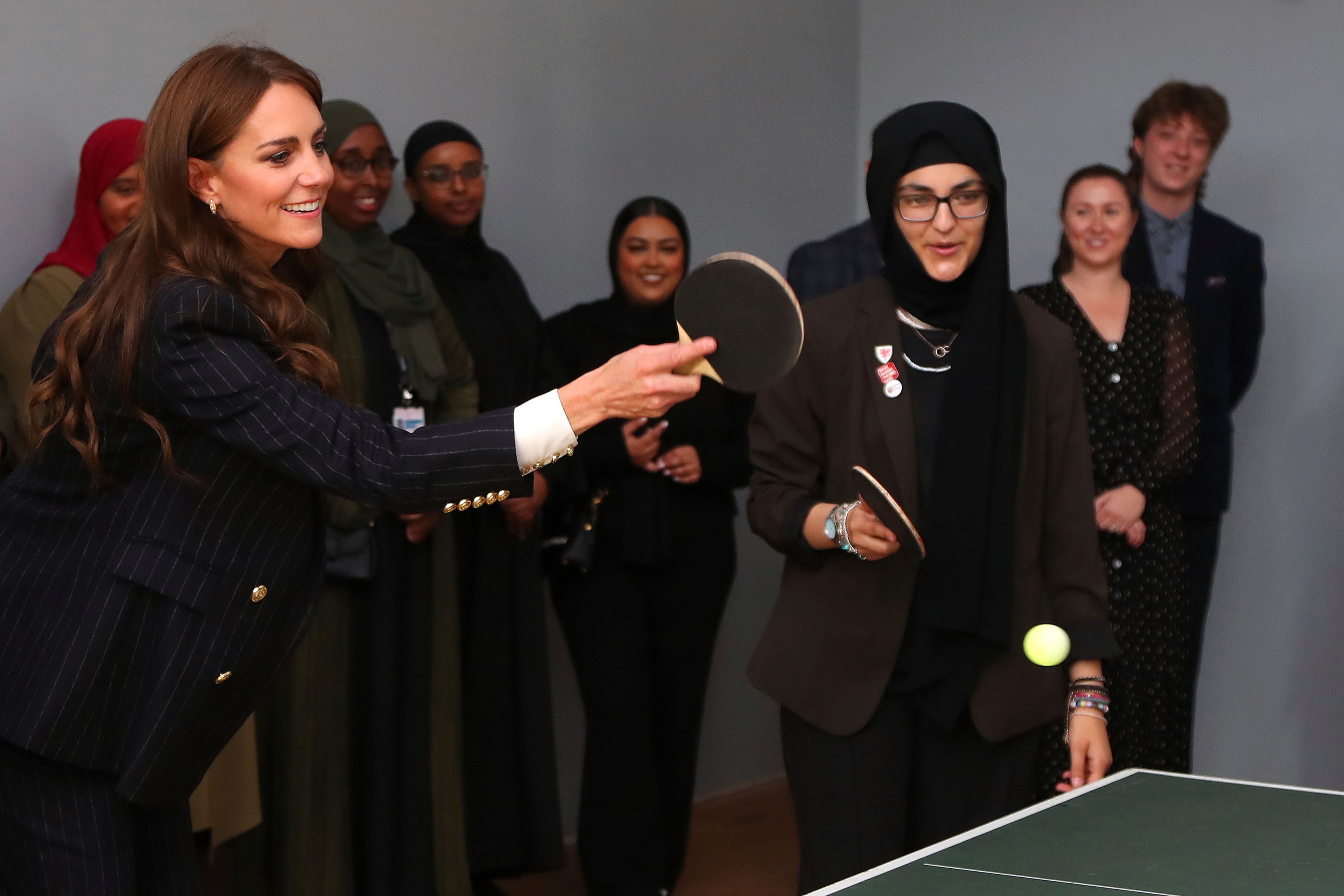 威廉王子和凱特王妃會見少數族群青年論壇成員,與當地耆老、小孩互動,聽取疾風世代對社區的貢獻,以及年輕世代如何推動變革。凱特和準備A-level考試的學生聊天時提到,10歲的大兒子喬治剛開始考試,「他會跟我抱怨『媽媽,我一直在考試』,我一直在幫喬治準備考試,所以我知道數學有多難!」