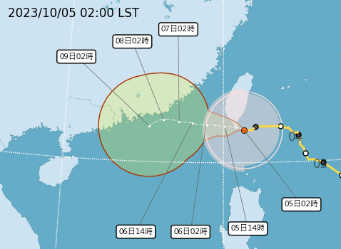 週五(6日)風雨趨緩,不過各地仍有雨勢,雙十國慶連假4天,週六(7日)水氣仍多,東半部地區及恆春半島有短暫陣雨,其他地區有局部短暫陣雨。下週日、下週一(8日、9日)迎風面基隆北海岸、東北部及大台北地區有短暫陣雨,基隆北海岸及東北部地區有局部大雨發生的機率,北部、東部、東南部地區及恆春半島有局部短暫陣雨,其他地區有零星短暫陣雨。