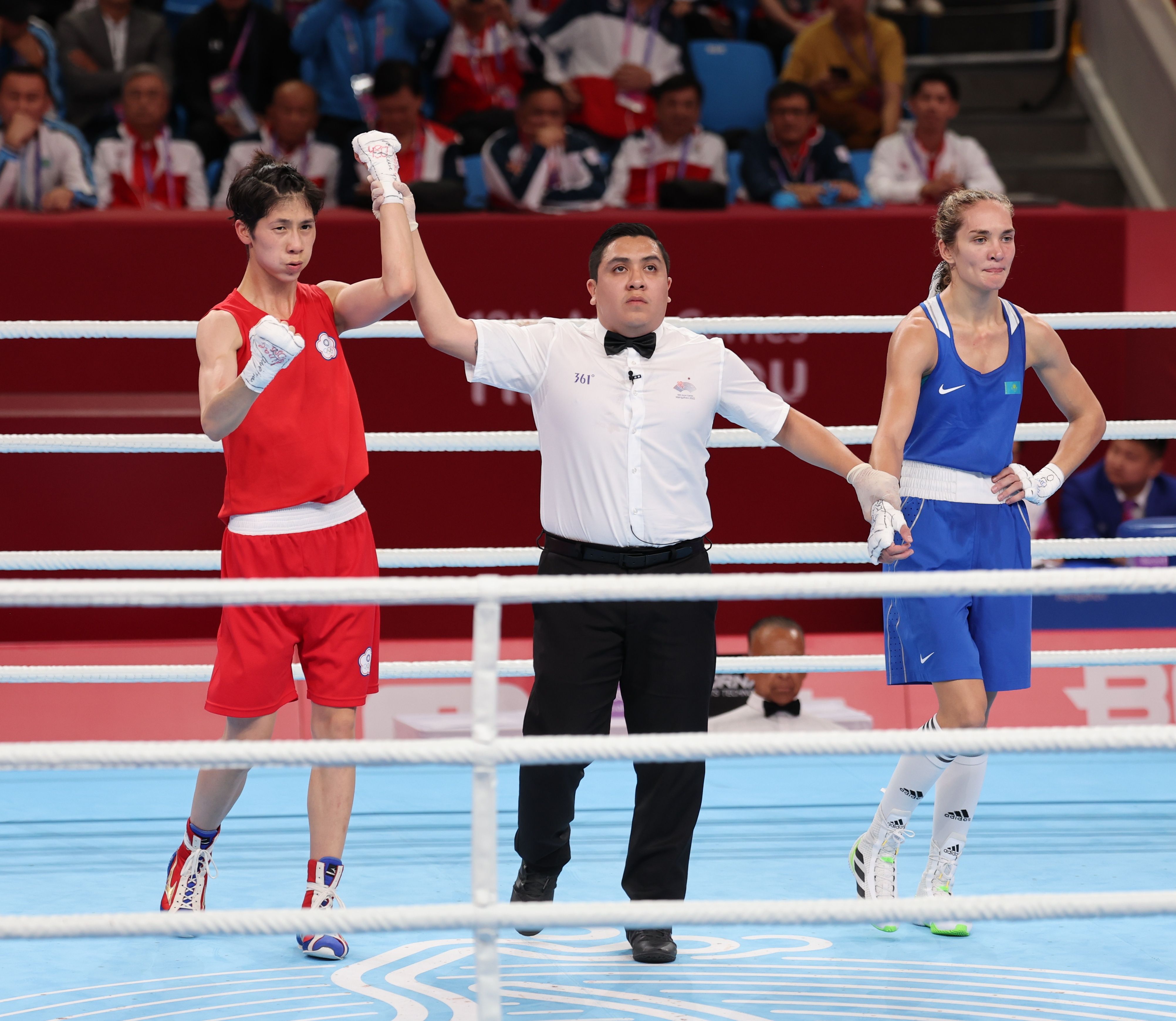 「台灣拳后」林郁婷今(5日)開打亞運57公斤級決賽,對上去年世錦賽銀牌、哈薩克好手易卜拉欣莫娃(Karina Ibragimova),林郁婷前兩局隨即以強烈攻勢打亂對手節奏,連續拿下5個10分後,第3局再搶下5個10分,順利完封對手,同時也抱回台灣隊的第一面拳擊金牌。