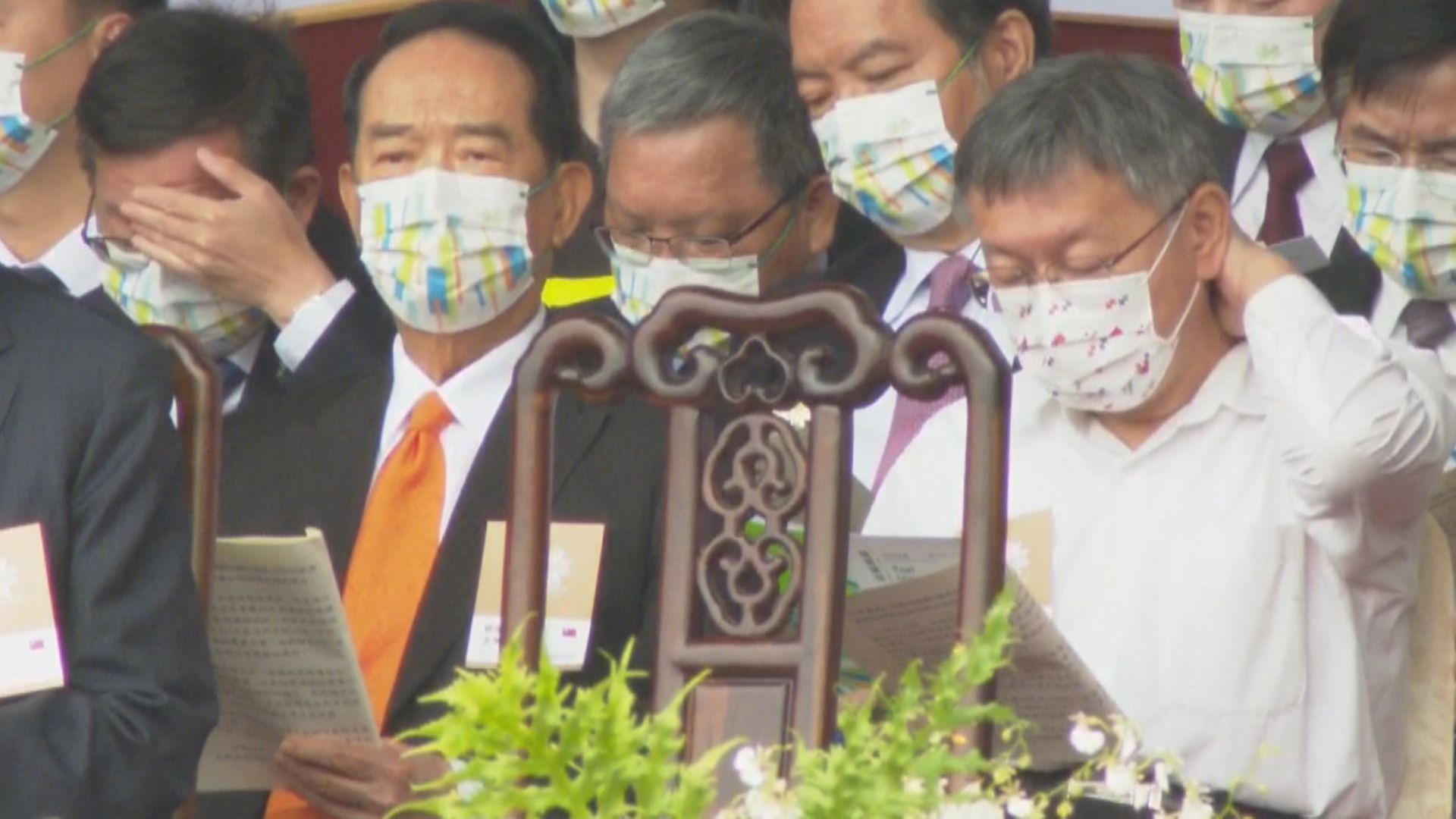 親民黨主席宋楚瑜今(10日)受邀參與國慶大會,他身穿西裝、配上白色背心印有「中華民國生日快樂」、背後則是國旗,與時代力量黨主席王婉諭比鄰而坐。宋楚瑜在總統蔡英文致詞結束後,向行政院長陳建仁遞交「私信」,事後也揭露是為蘭嶼風災災民陳情,爭取電路地下化。