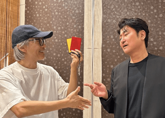 近日宋康昊飛到香港出席亞洲電影節,周星馳意外在Instagram曬出2張合照,周星馳先是手拿足球裁判的紅、黃卡,示意要和宋康昊合作,另一張則是兩人手上拿著23年前上映的《茅躉王》海報笑開懷,原來兩人當年就曾因電影「隔空合作」過,宋康昊當時主演的喜劇《茅躉王》在香港上映,粵語版找來周星馳配音,由於宋康昊演技精湛、喜感十足,在香港還獲封「南韓周星馳」。
