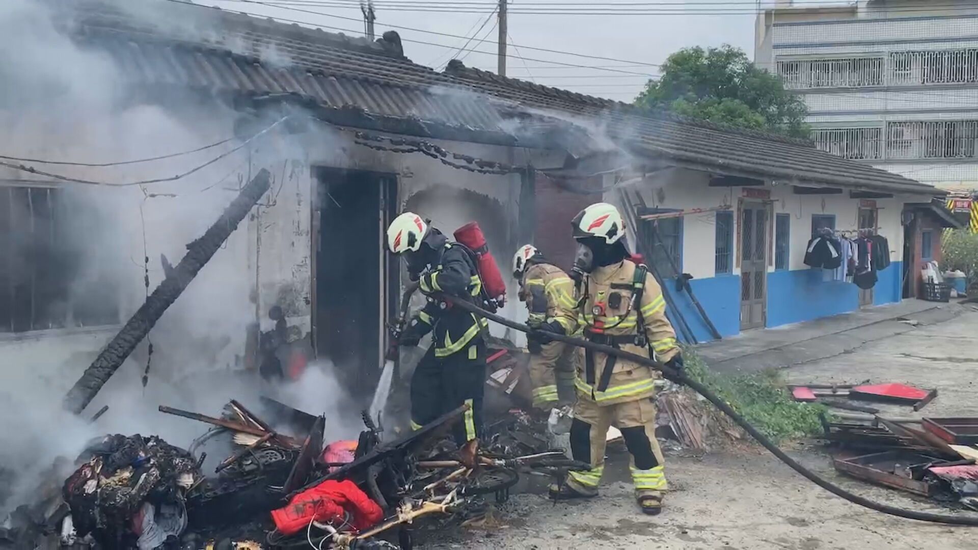 嘉義一間三合院今(16日)上午10點多發生一起火警意外,警消獲報後立刻到場灑水灌救,並發現兩名幼童受困火場。