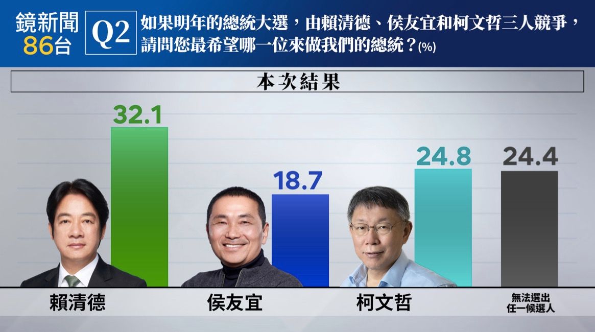 三腳督賴32.1%第一 柯第二24.8%卻跌最多 侯老三18.7%
