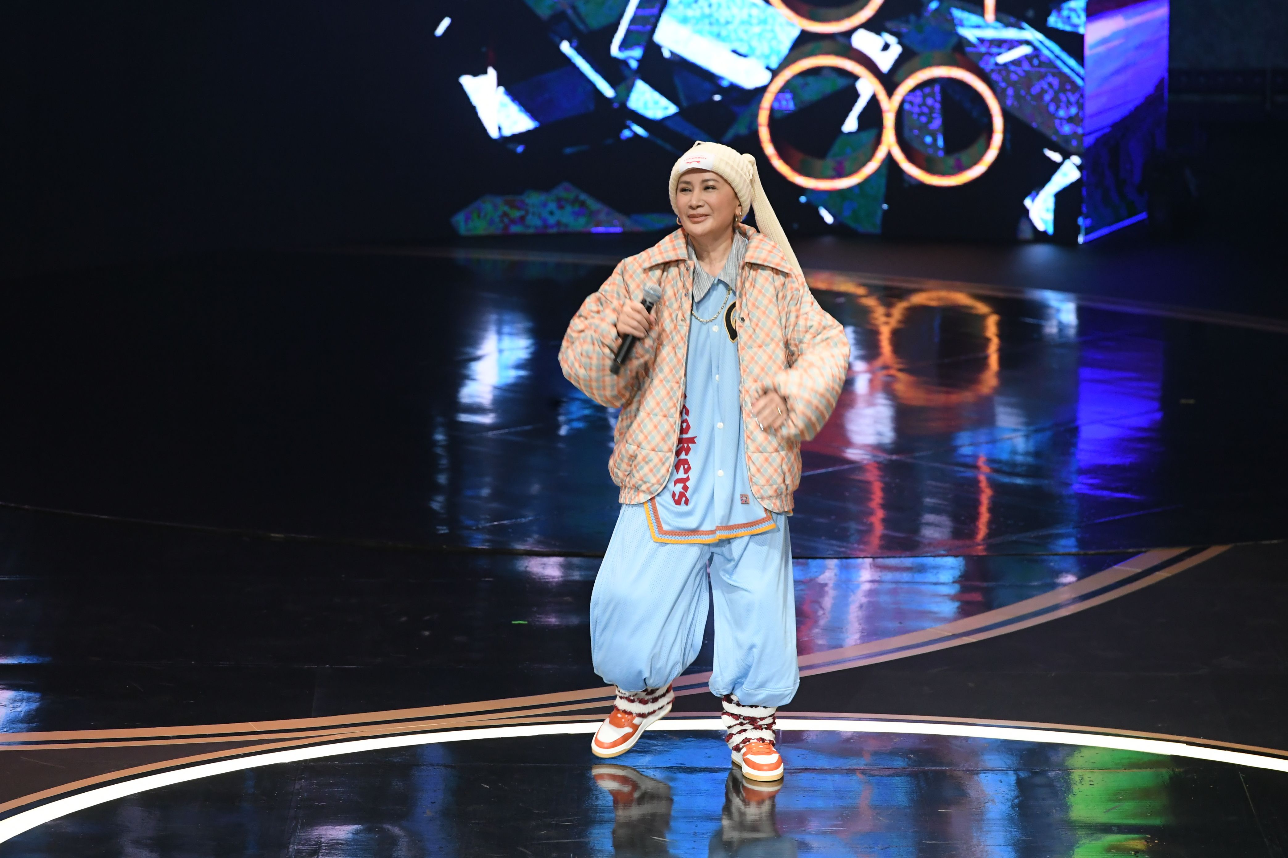 她唱到一半似乎玩開了,大喊:「有沒有人要看地板霹靂舞?掌聲在哪裡?」讓台下頓時沸騰,紛紛起鬨要她「跳下去」,結果她立刻巧回「不可能!今年58(下個月將滿58歲)」,把今年第58屆這個數字帶入,接近耳順之年的她豁出去果然收到奇效,結束表演時,她邊喘氣邊介紹下組表演嘉賓,感嘆「真的很喘欸」,又讓現場笑聲連連。