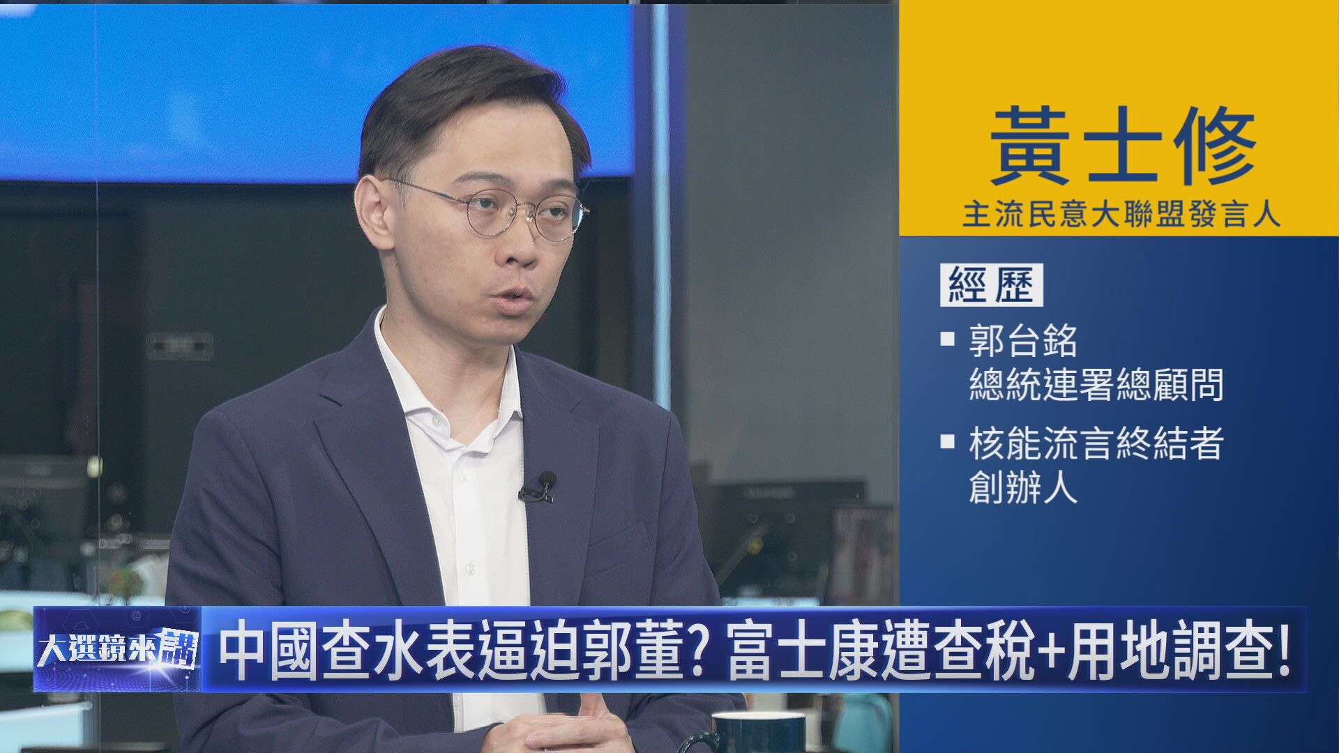 郭台銘競選辦公室發言人黃士修今天(23日)接受鏡新聞《大選鏡來講》主持人平秀琳訪問,面對中國查稅是不是意圖影響郭台銘參選行動,黃士修強調,郭台銘早在4年前,就已經離開鴻海集團經營角色,郭台銘本人對查稅事件,「沒有任何反應」,也不覺得會影響自己的選情。