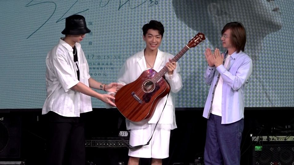 出道記者會上的亮點之一,金曲獎情歌王子林隆璇帶著也是歌壇創作新人的林亭翰父子二人到場祝賀,還送上一把聲音表現很好的單板木吉他,希望許蒙能用這把吉他創作出更多好作品,同時能保持木吉他一樣純淨的初心,保持著原來喜歡音樂創作的心,持續下去走音樂的路。許蒙立刻用這個剛剛到手的禮物,自彈自唱了一段自己的創作《旅人》,乾淨溫暖的音質讓全場相當驚艷,他靦腆地說,接下來到年底會有三首單曲,陸續上架到串流平台,讓大家聽見他的音樂。
