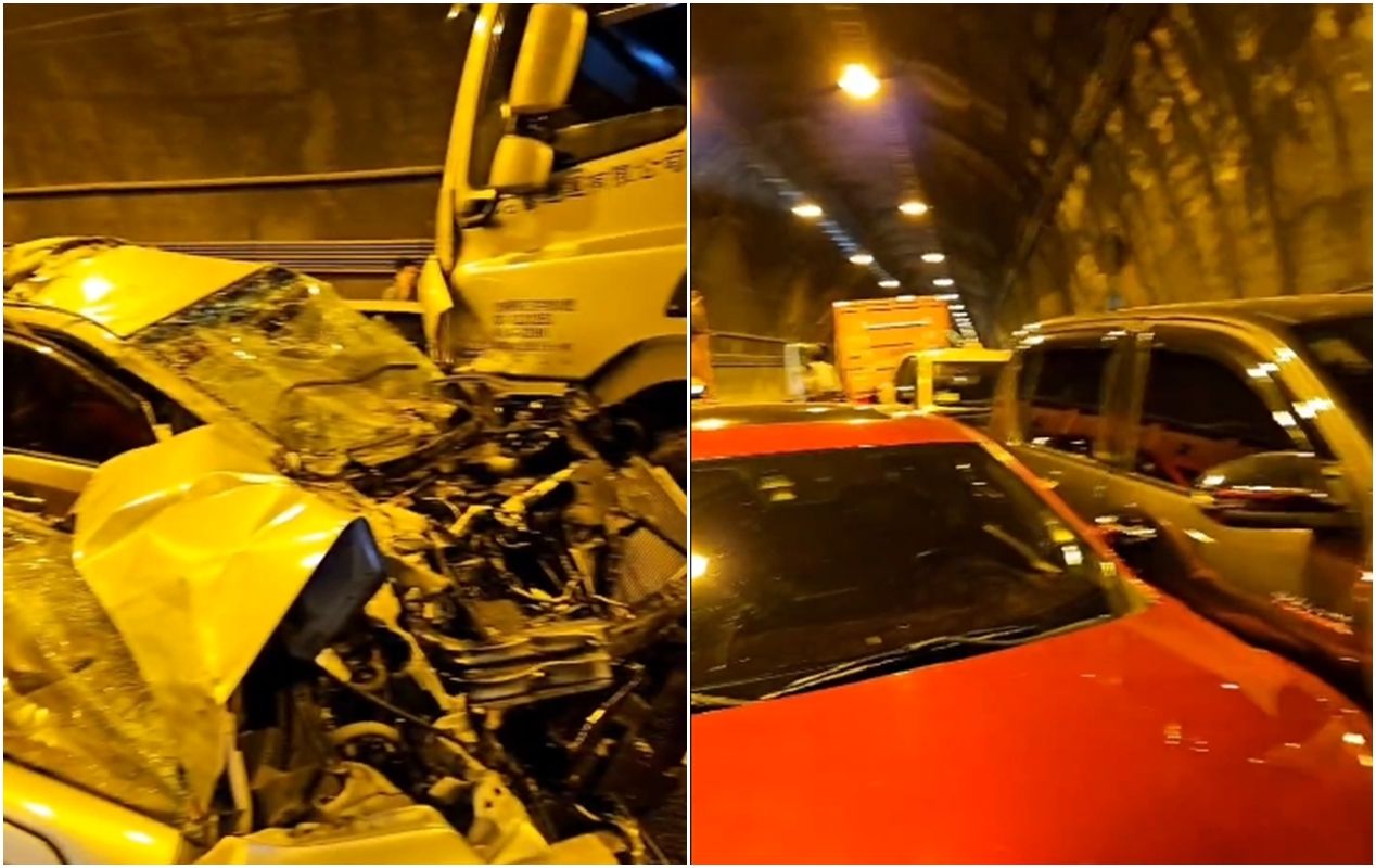 據警方初步調查,55歲蔣姓砂石車駕駛,在限速40公里的隧道內,在幾乎沒煞車狀況追撞前車,其中還包含一名重機騎士,因遭追撞被壓在車底,經過搶救才脫離險境;砂石車駕駛偵訊時表示「一時恍神沒注意」,才造成這場嚴重車禍。至於砂石車是否超速,台北監理所宜蘭監理站初步表示,經調閱該車GPS速度紀錄,車輛於隧道內行駛速度皆於速限40公里以下,惟相關事證已由警方扣留分析中,後續將以警方調查結果為主。