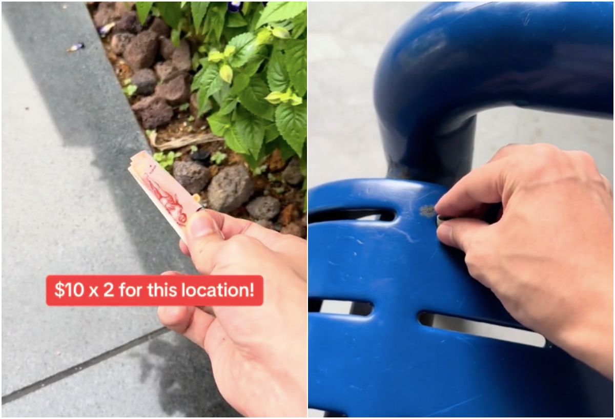 這名男子自今年9月初,開始在TikTok帳號發出藏錢影片,從一開始的新幣10元紙鈔、陸續往上加到新幣20元及50元不等,他會將紙鈔藏在公開場合,最常見藏放地點是長椅,每次放完後,會拍下附近畫面傳上網路,作為網友的找尋線索。