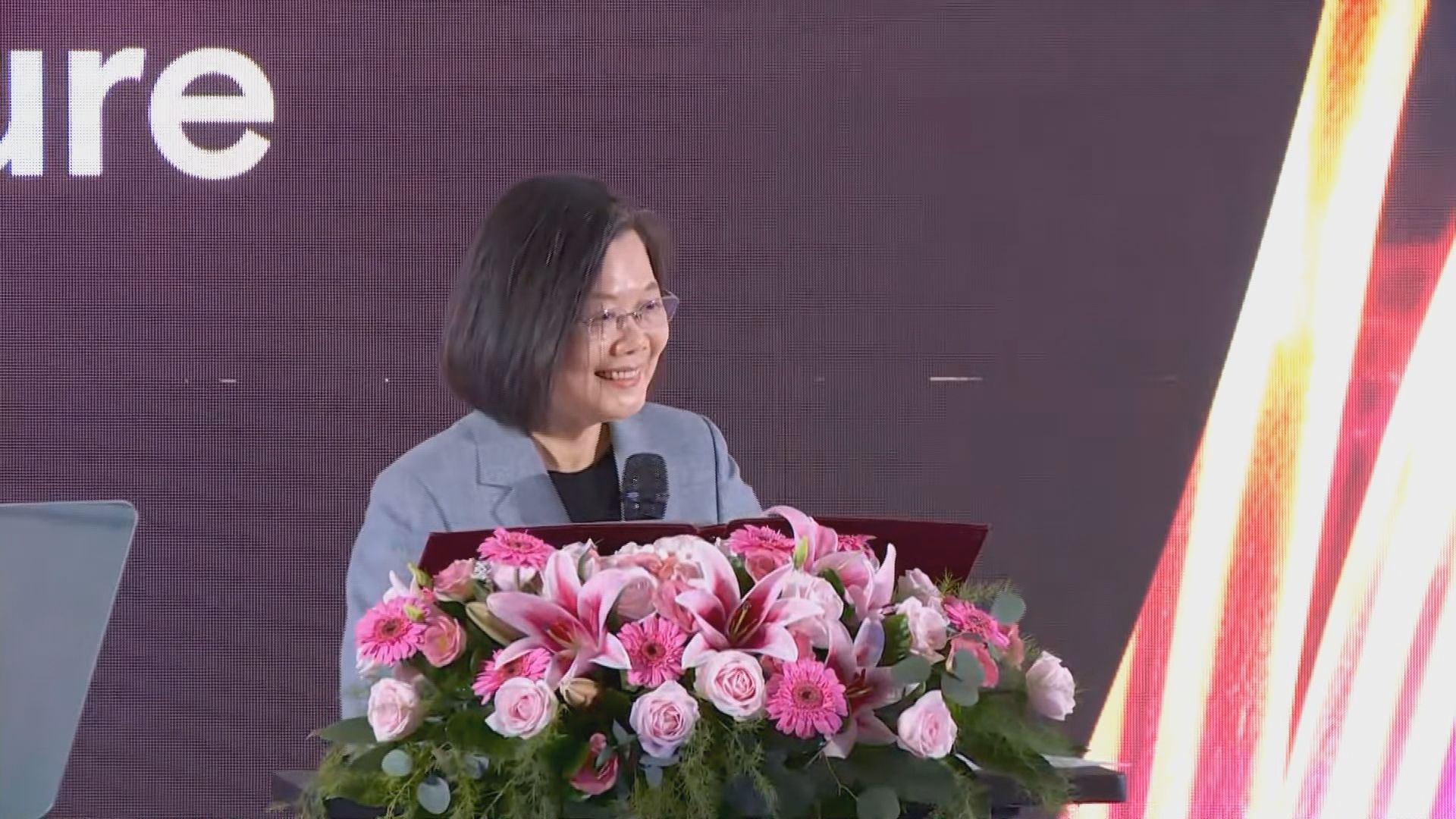 總統蔡英文全程以英文致詞,表示很開心見證美光創重要時刻,更欣喜於見到大型外資把台灣視為適合和安全的投資地,強調安全的供應鏈比過往任何時間都重要。而台灣之所以能提供穩定的環境並非偶然,過去幾年台灣為提升基礎建設擴大投資,在國際社會面臨考驗時展現經濟韌性,去年外國來台投資金額超過130億美元,創下近15年來新高。政府除強化與夥伴的經貿關係,也為台灣產業的未來做準備,期待看到美光在台繼續茁壯,在全球數位和綠色領域獲致更大的成就。