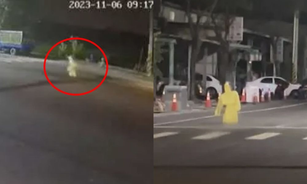 彰化溪州中山路二段路口6日出現「雨衣」過馬路的奇景,深夜10點多有民眾直擊一件黃色雨衣以「人形」緩慢穿越馬路,又回到中央分隔島,期間車輛經過時雨衣更剛好閃過,最後飛出鏡頭外,引發網友熱議。