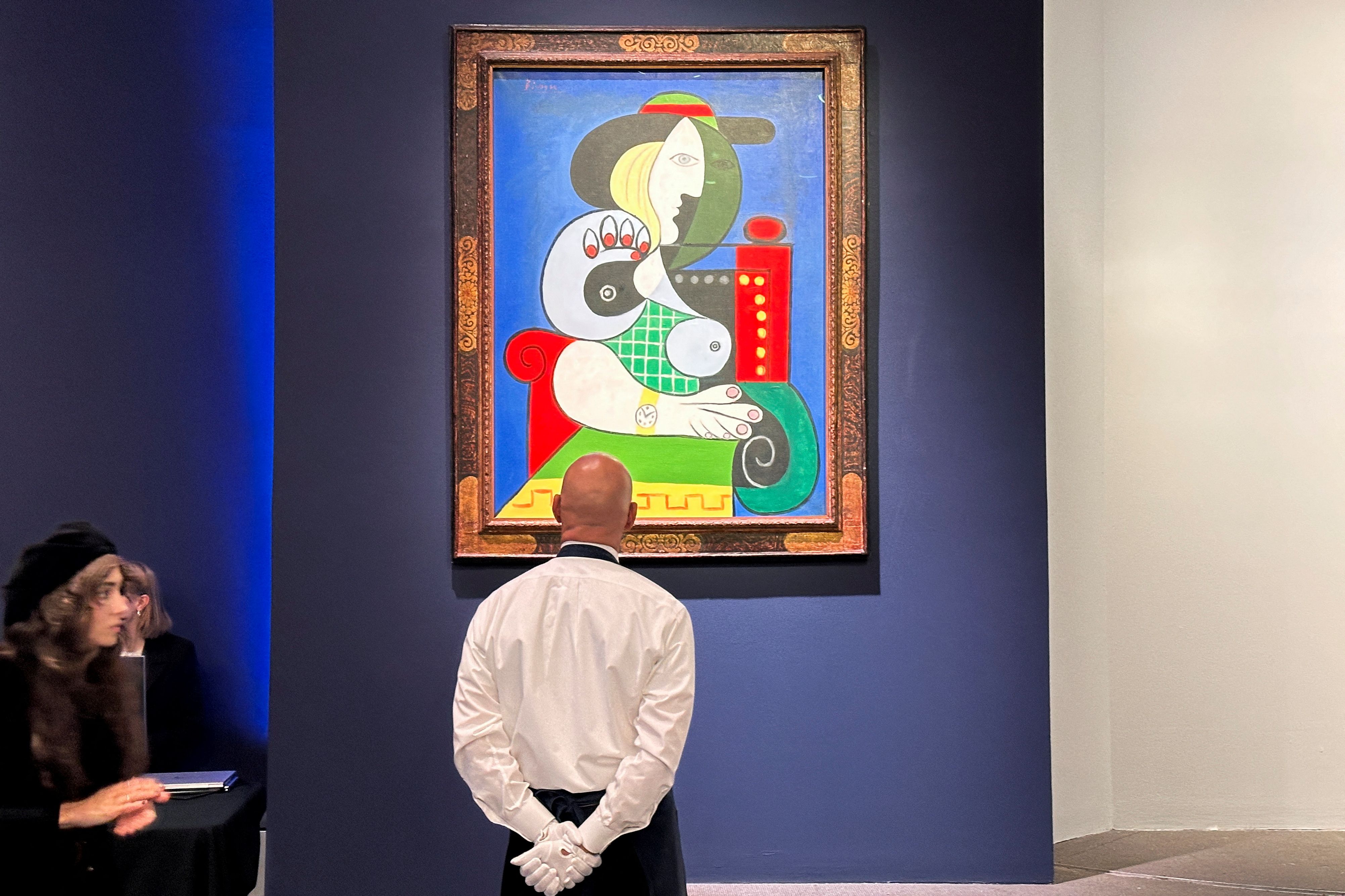 據《路透社》報導指出,這幅畫是畢卡索在1932年的創作,當時仍是已婚身份的他,以小情人瑪莉-德雷莎‧沃特(Marie-Therese Walter)作為繆思的畫作。《戴手錶的女人》原本是紐約已故收藏家艾米莉.費雪.蘭多(Emily Fisher Landau)的珍藏之一,總估價超過4億美元的拍賣品在8日晚間進行拍賣。