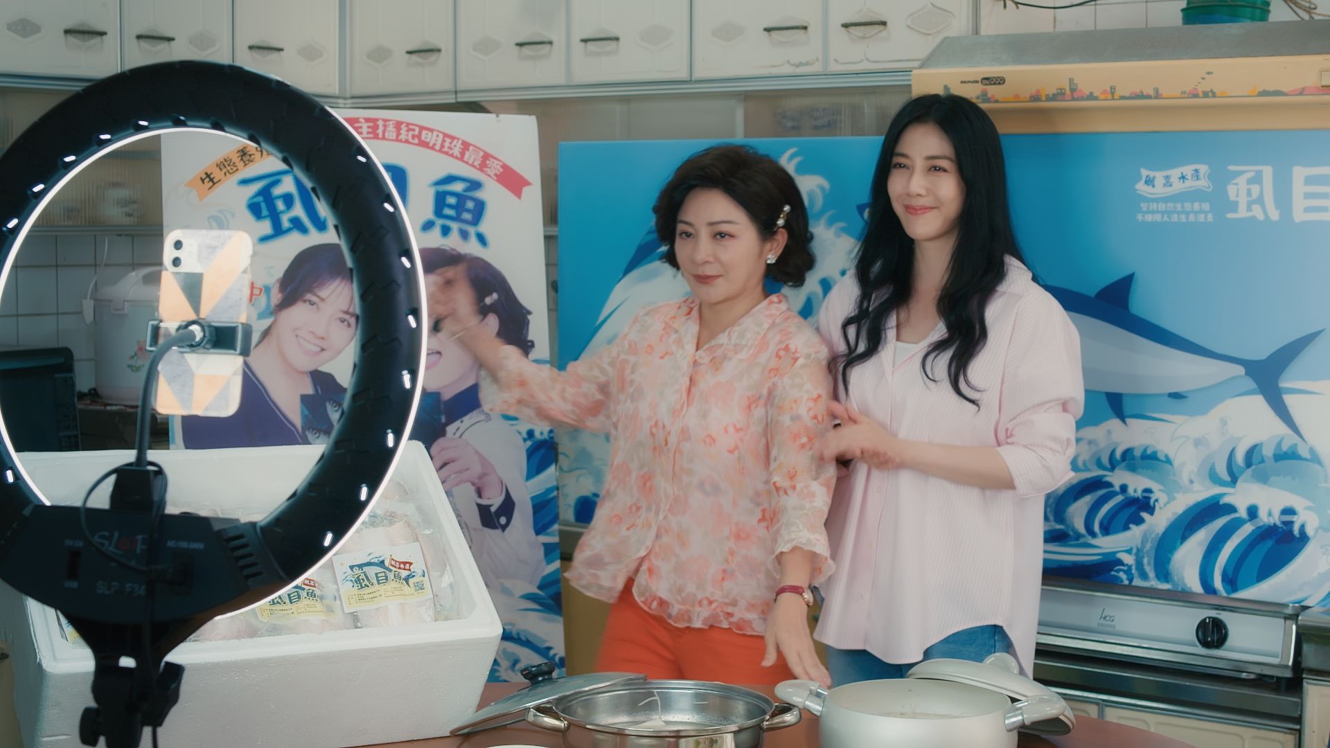 劇中韓瑜從新聞主播轉型成網路直播主,笑說,拍這部戲幫她開啟很多技能開關,平常是在刷抖音、臉書時會看直播,大概知道直播賣貨是什麼狀況,大讚合作的王彩樺很會帶氣氛。王彩樺則透露,事前看了很多網紅賣貨的影片做準備,拍攝現場大家笑得很開心,應該有發揮很好的效果。