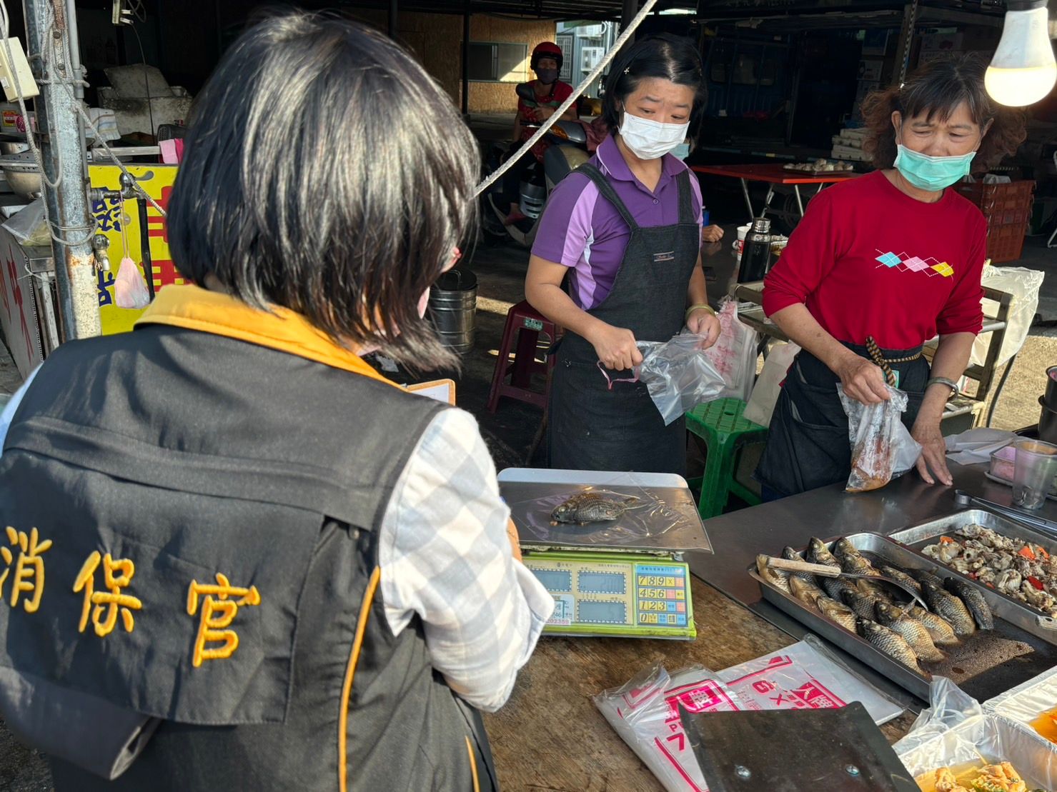 台南市府出動消保官到市場訪查。(台南市政府提供)
