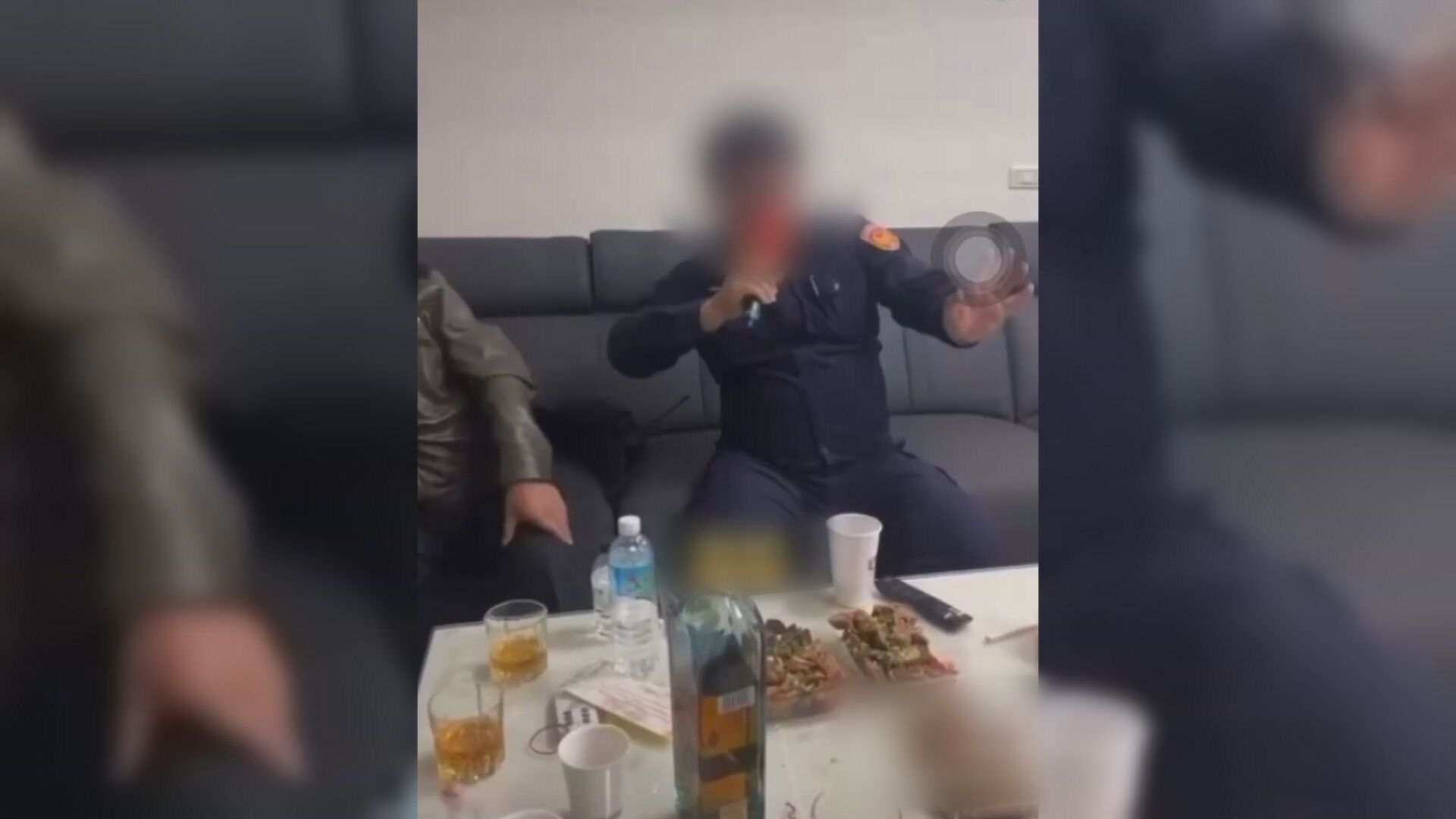 身穿制服的員警,拿起麥克風熱唱,桌子上還擺著威士忌與下酒菜,緊接著場景切換,搭配背景音樂,勁歌熱舞,還坐在泡茶的瓦斯桶前,點起菸吞雲吐霧,甚至把點燃的仙女棒,夾在胯下扭腰擺臀,更用手機錄下這些敗壞警譽的行為,而如今這段影片,也在網路上瘋傳。