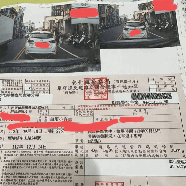 一名男子日前行經彰化縣鹿港鎮中山路時,因在車道暫停讓乘客上車,被民眾檢舉而吞下一張2.4萬元罰單及記3點處分,男子氣得在臉書社團抱怨罰太重,還指責「民眾自己拉車門上車,怎麼可以只罰駕駛,而不教育乘客」等,貼文引來多數人撻伐,畢竟駕駛違規在先。