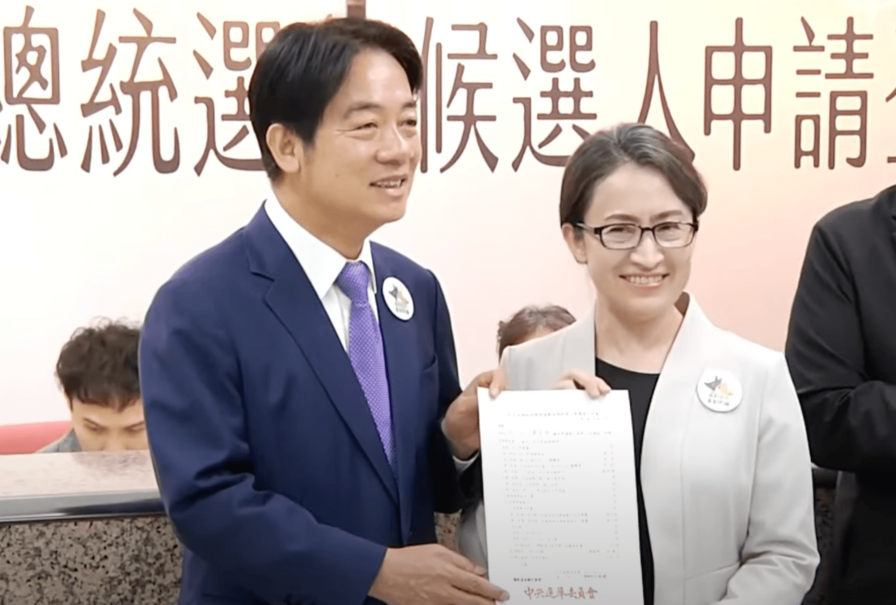 民進黨總統參選人賴清德20日下午正式宣布副手人選是蕭美琴,21日上午9點,2人一同前往中選會登記參選!完成登記後,賴清德發表演說,喊話會和蕭美琴讓台灣持續在穩健的路上走入國際、迎向未來。