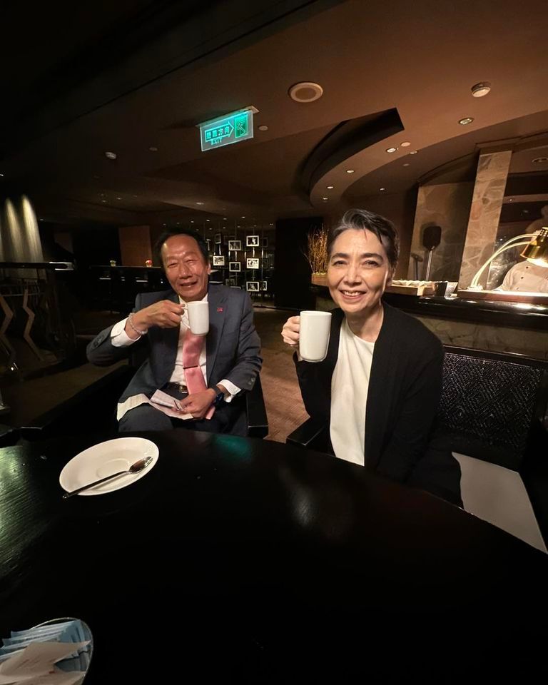 不久後郭台銘也在臉書貼出這張照片,畫面中,郭台銘與賴佩霞笑容燦爛,在這忙碌的一天中找到稍微喘息的空間。