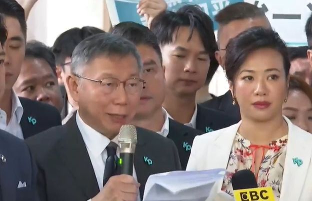 「柯侯郭」23日三方會談不歡而散,24日是總統候選人登記截止日,民眾黨總統參選人柯文哲和國民黨總統參選人侯友宜,各自赴中選會登記。柯文哲上午11點10分左右,與副手「吳欣盈」一起現身中選會登記。