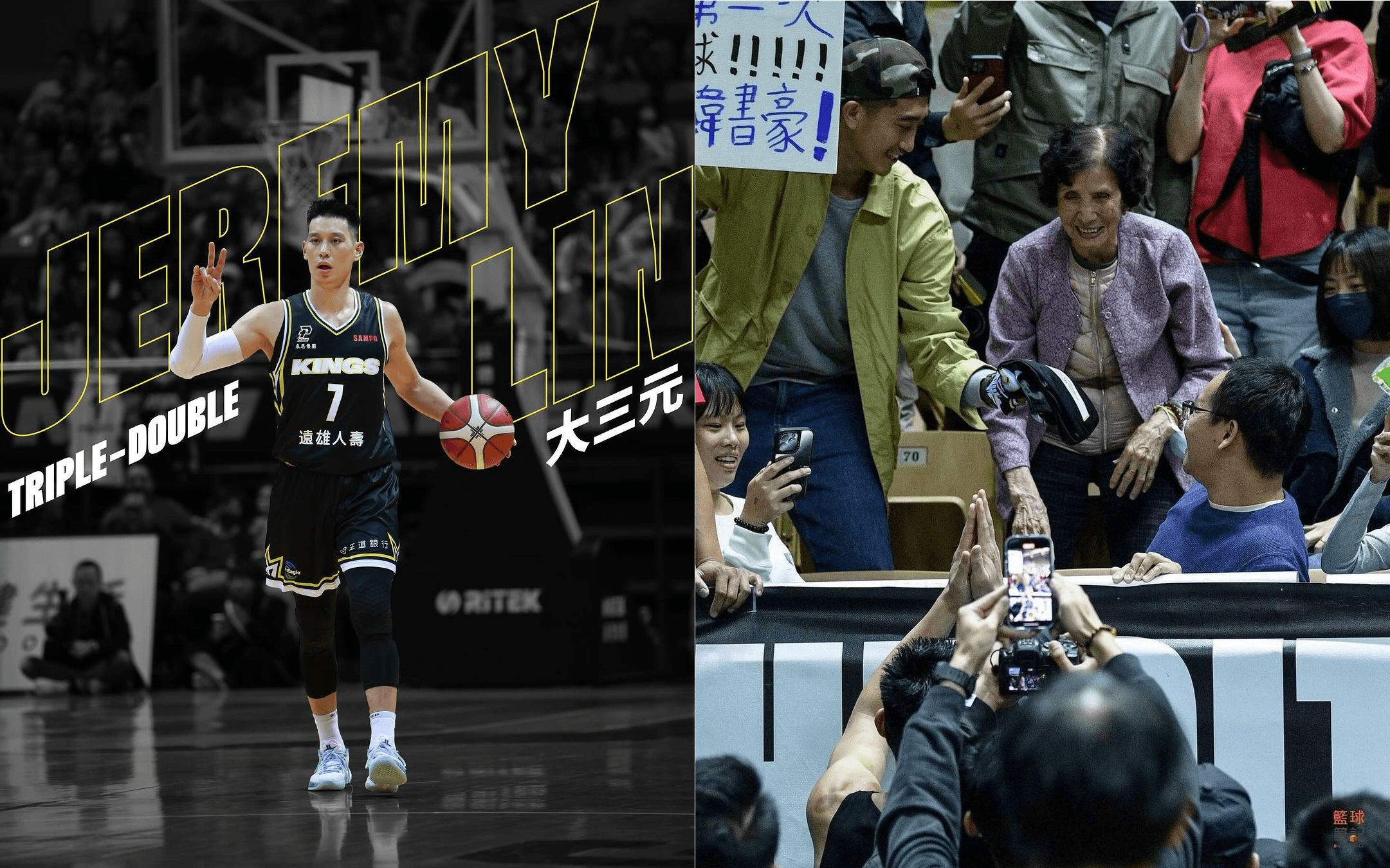 前NBA球星林書豪今年返台,先加盟PLG高雄鋼鐵人,後轉戰PLG新北國王,與弟弟同隊,吸引球迷慕名買票入場,為台灣職籃打強心針。週日(26日)一場比賽,一位球迷帶著86歲阿嬤一同入場,還舉牌強調這是阿嬤第一次進場看球,就是為了林書豪兄弟,林書豪該場繳出大三元的好表現,並直接將球衣脫下送給該位球迷阿嬤,引得全場尖叫歡呼。