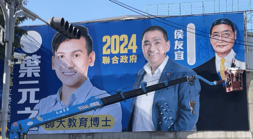 葉元之在本月15日藍白會談後,早早掛上印有「2024聯合政府」字樣的看板,上頭還有他及侯友宜、柯文哲三人同框的競選照,未料藍白合狀況急轉直下,最終登記參選日確定各自選,侯友宜找來中廣董事長趙少康當副手,柯文哲則是找黨內不分區立委、新光大公主吳欣盈搭擋。