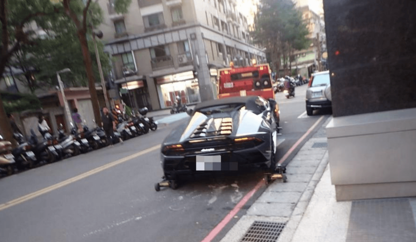 昨(2日)下午4時許,1輛價格不斐的藍寶堅尼超跑,大剌剌違停板橋廣和路紅線上,怎料遇上警方拖吊車巡邏經過,由於車主及駕駛人均未即時出現,警方便對違停「小牛」進行違規舉發拍照,隨後拖吊車將輔助輪裝上超跑輪胎,全程不到10分鐘「小牛」就被以螃蟹夾方式拖走。