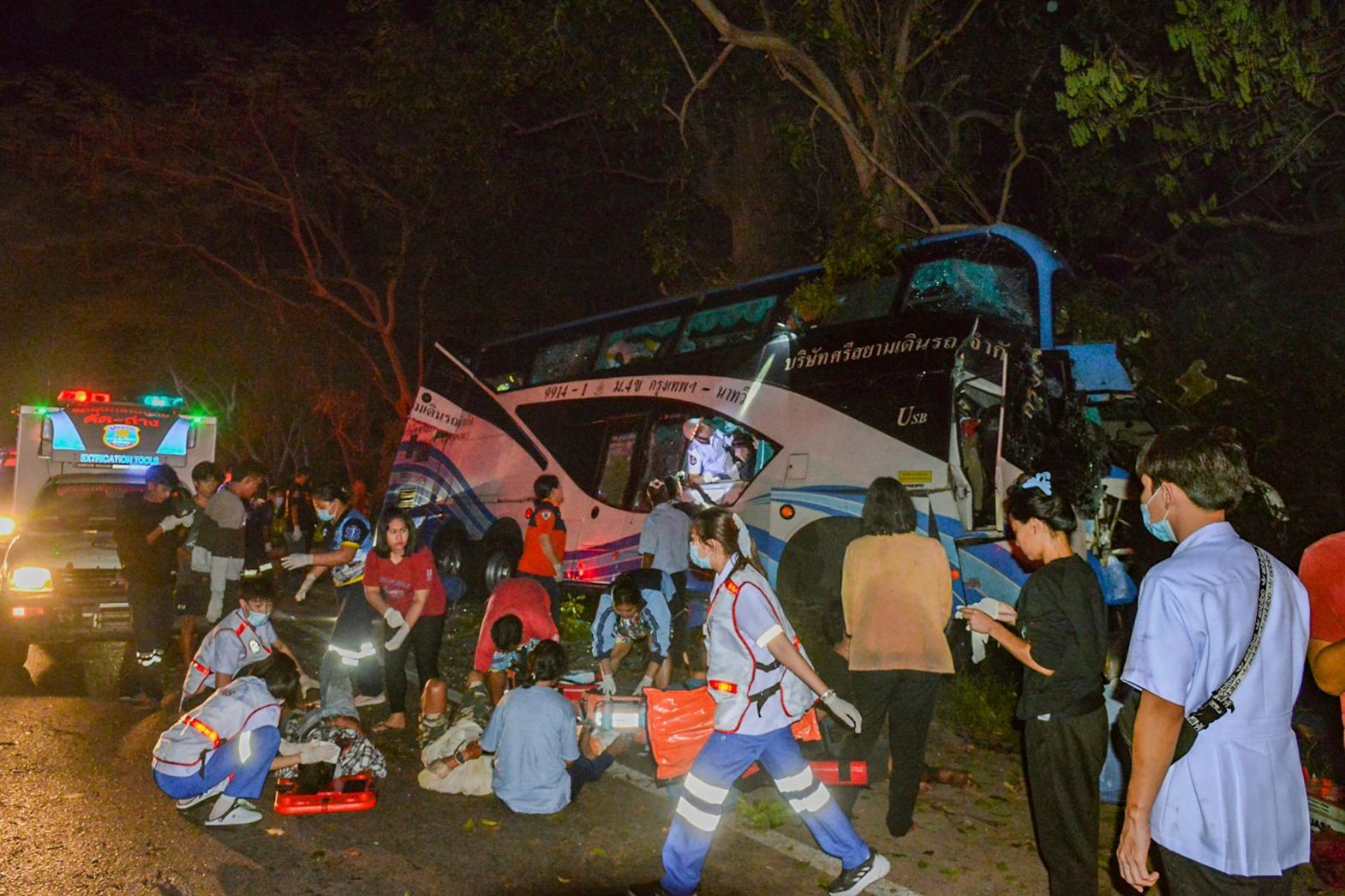 泰國今(5日)發生一起嚴重車禍,一輛從曼谷開往南部的夜間巴士,在清晨經過班武里府途中,突然撞上路邊的樹,造成至少14人罹難,30多人受傷。