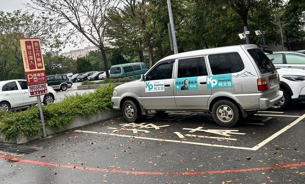 民進黨新竹市議員林盈徹6日到新竹市殯儀館參加儀式時,發現民眾黨總統參選人柯文哲的競選宣傳車違規「接體車位」,然而當時停車場仍有位置,讓他無奈表示:「慣性違規停車」、「先把守法、秩序,還給我們吧」。對此,民眾黨新竹縣議員林碩彥表示,當事車輛為助理所有,助理因要卸貨所以臨停該車位,已虛心檢討,並提醒助理多加留意。
