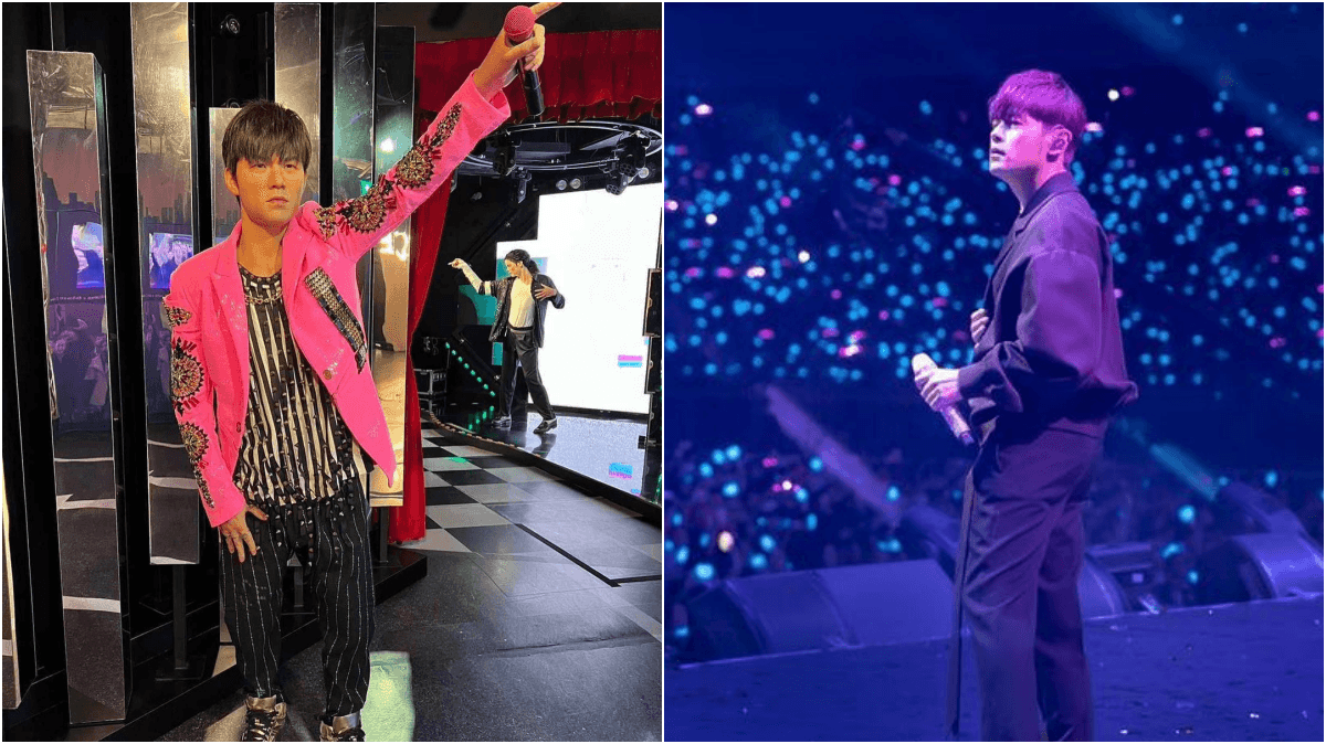 周杰倫透過社群平台分享蠟像照,照片中的「蠟像杰倫」穿著桃紅色服裝,手持麥克風,指向遠方。周杰倫也在發文中表示「我最近有比較瘦」,並開玩笑地問粉絲,蠟像杰倫的手上是否該拿杯奶茶。
